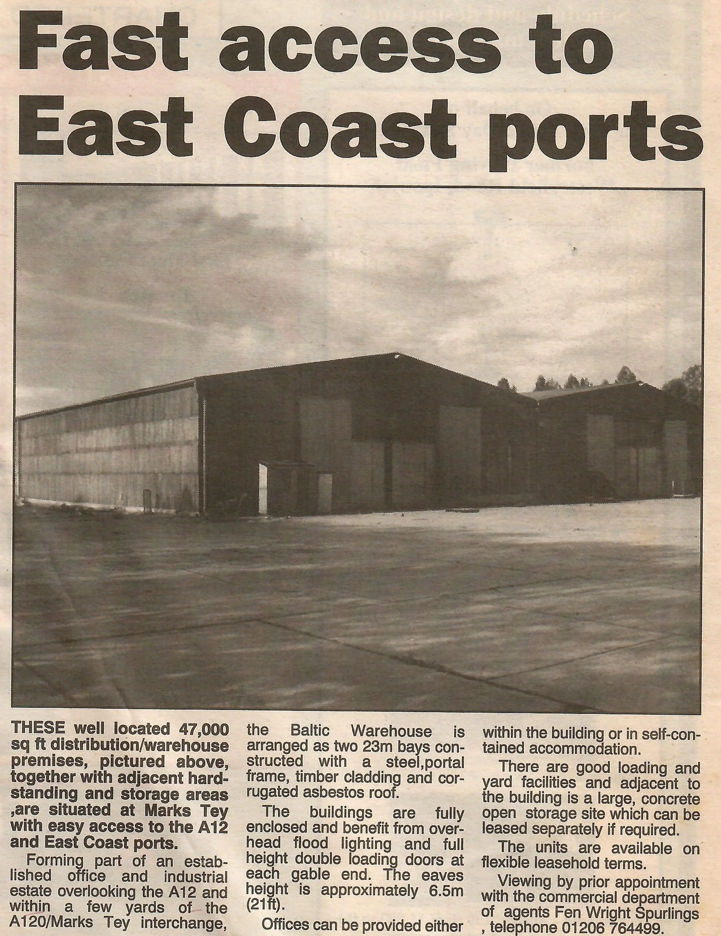Newspaper advertisement for warehouse premises.