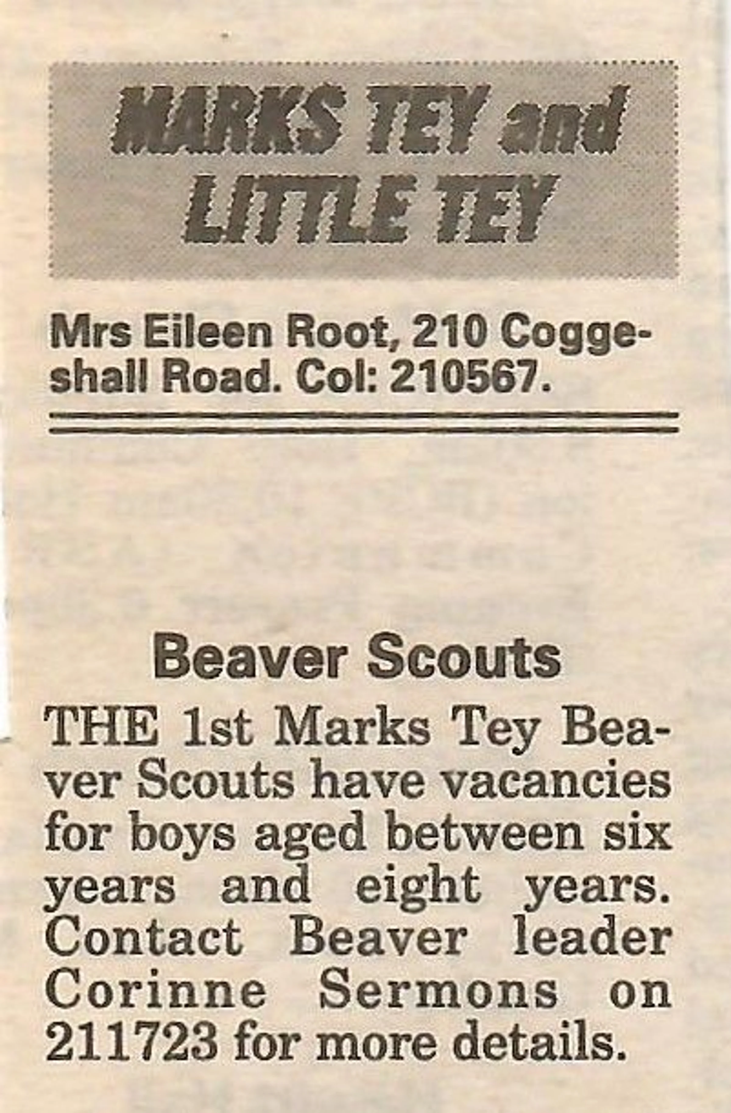 Village news column reporting on the Beaver Scouts.