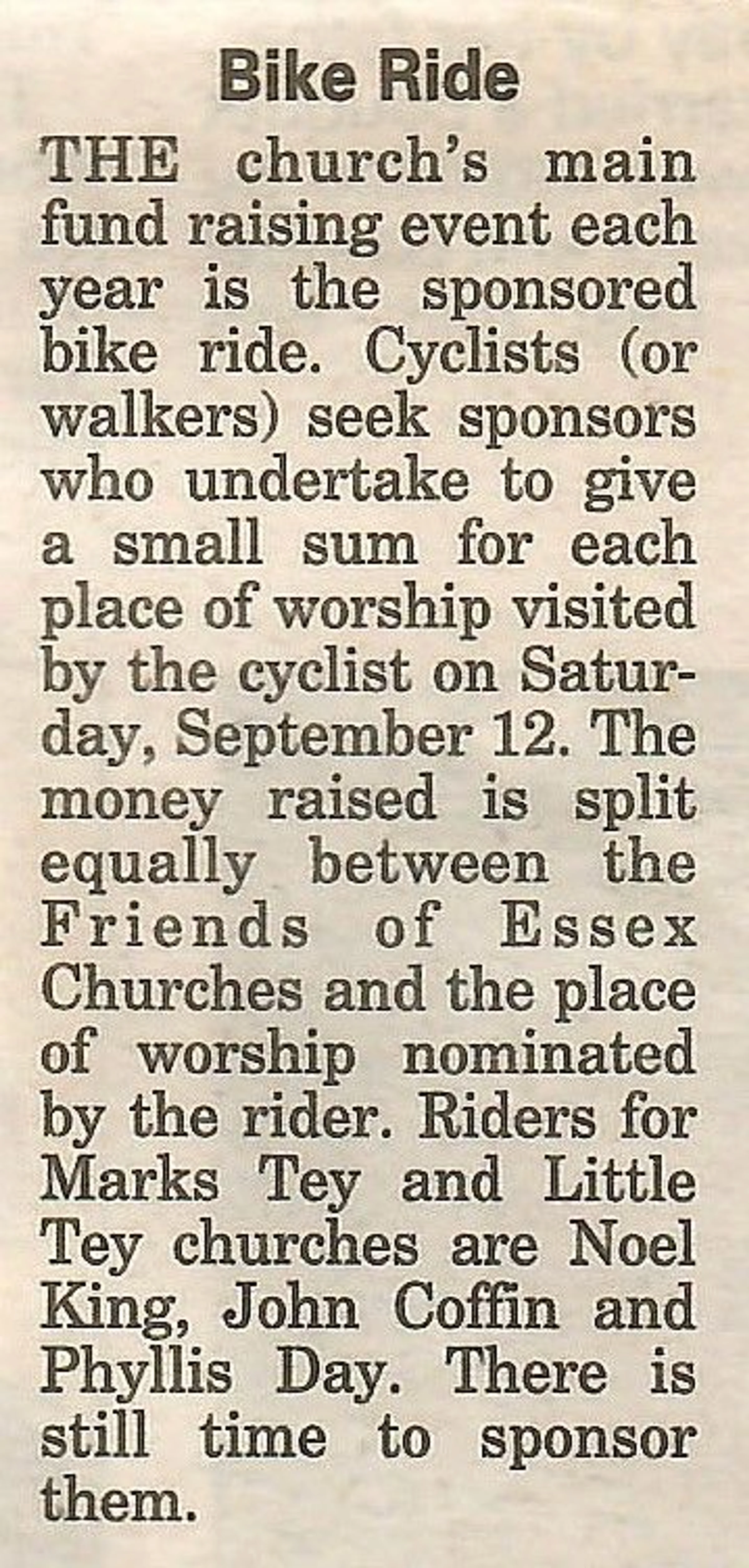 Village news column regarding the church bike ride.