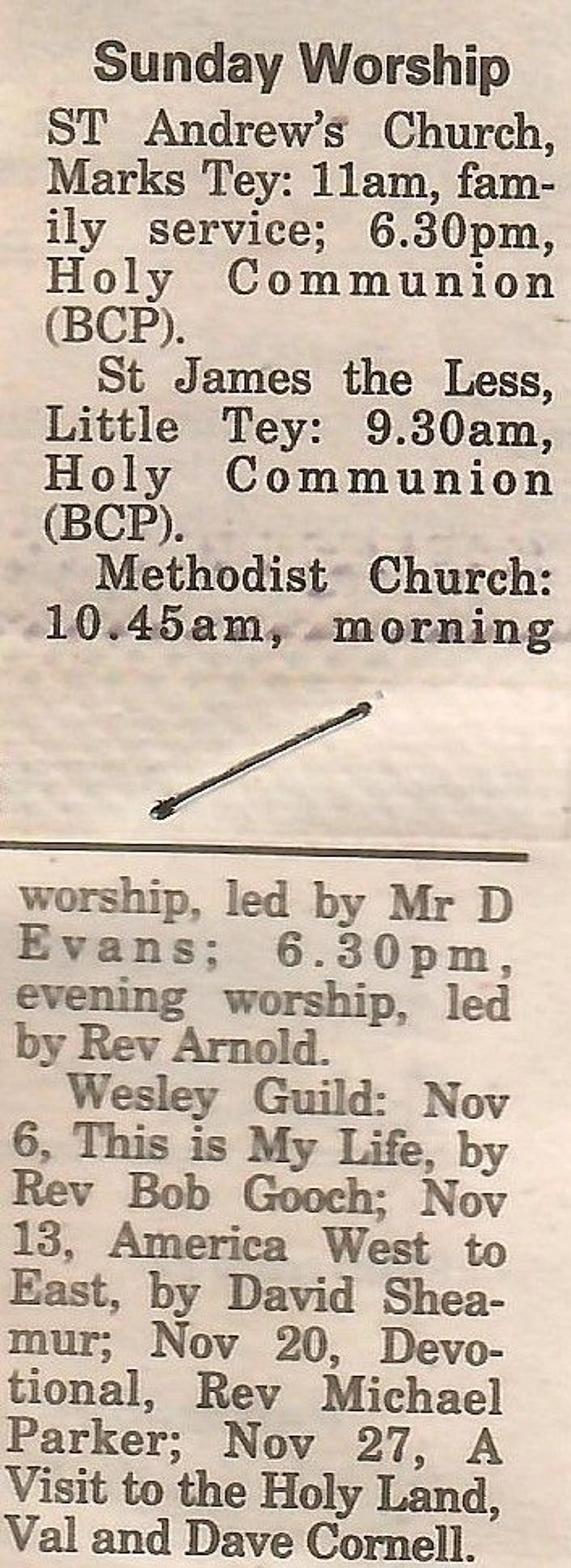 Village news column regarding church services.