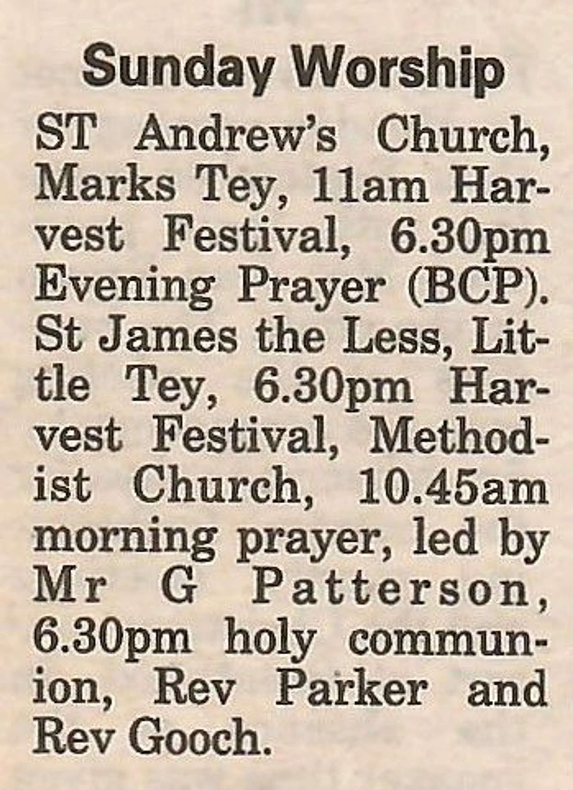 Village news column regarding church services.