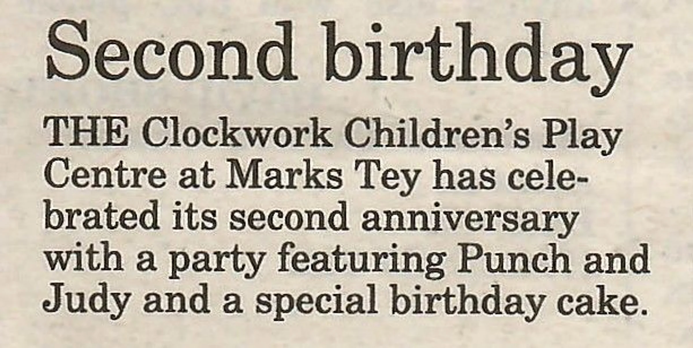 Newspaper report on the Clockwork Children's Play Centre.