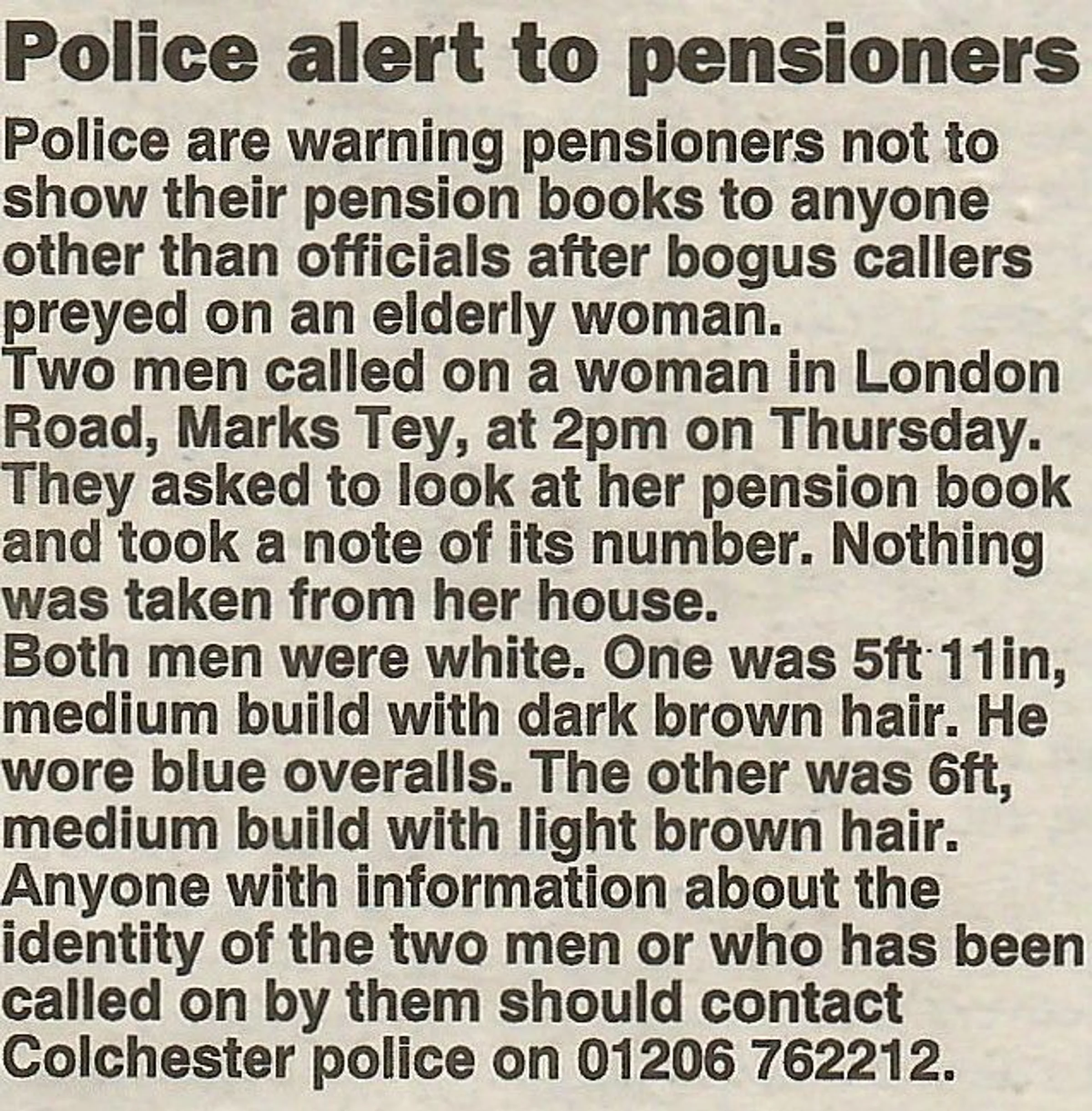 Police alert to pensioners