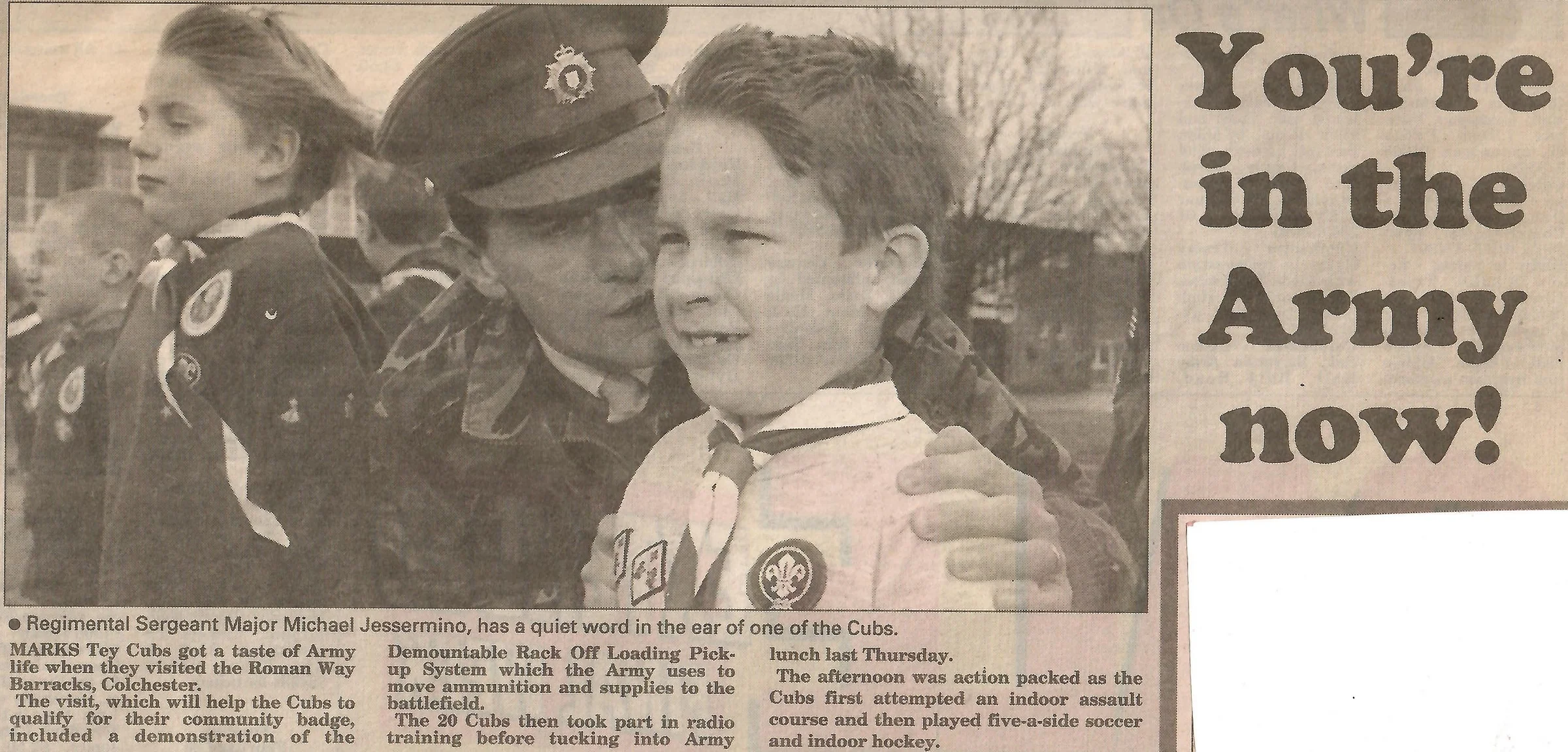 Article and photograph reporting on the trip the Cubs made to Colchester Barracks.