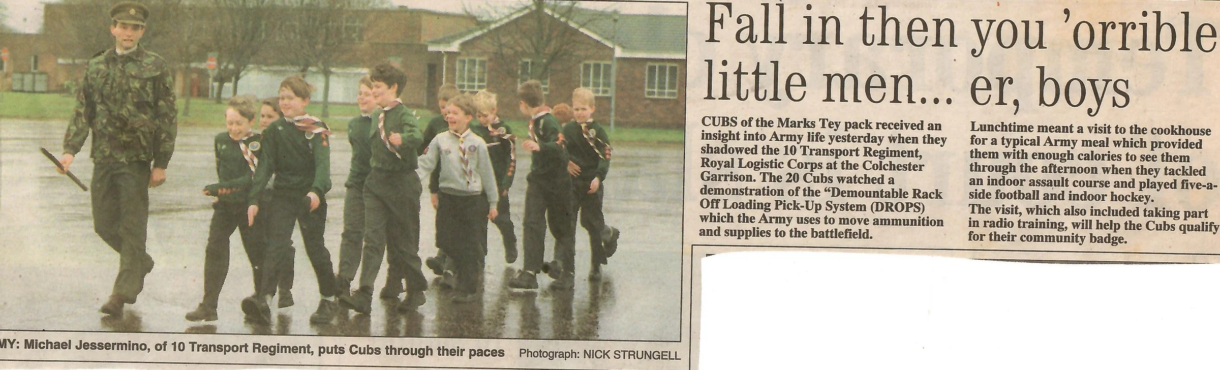 Photograph and article about the Cub's trip to Colchester Barracks.