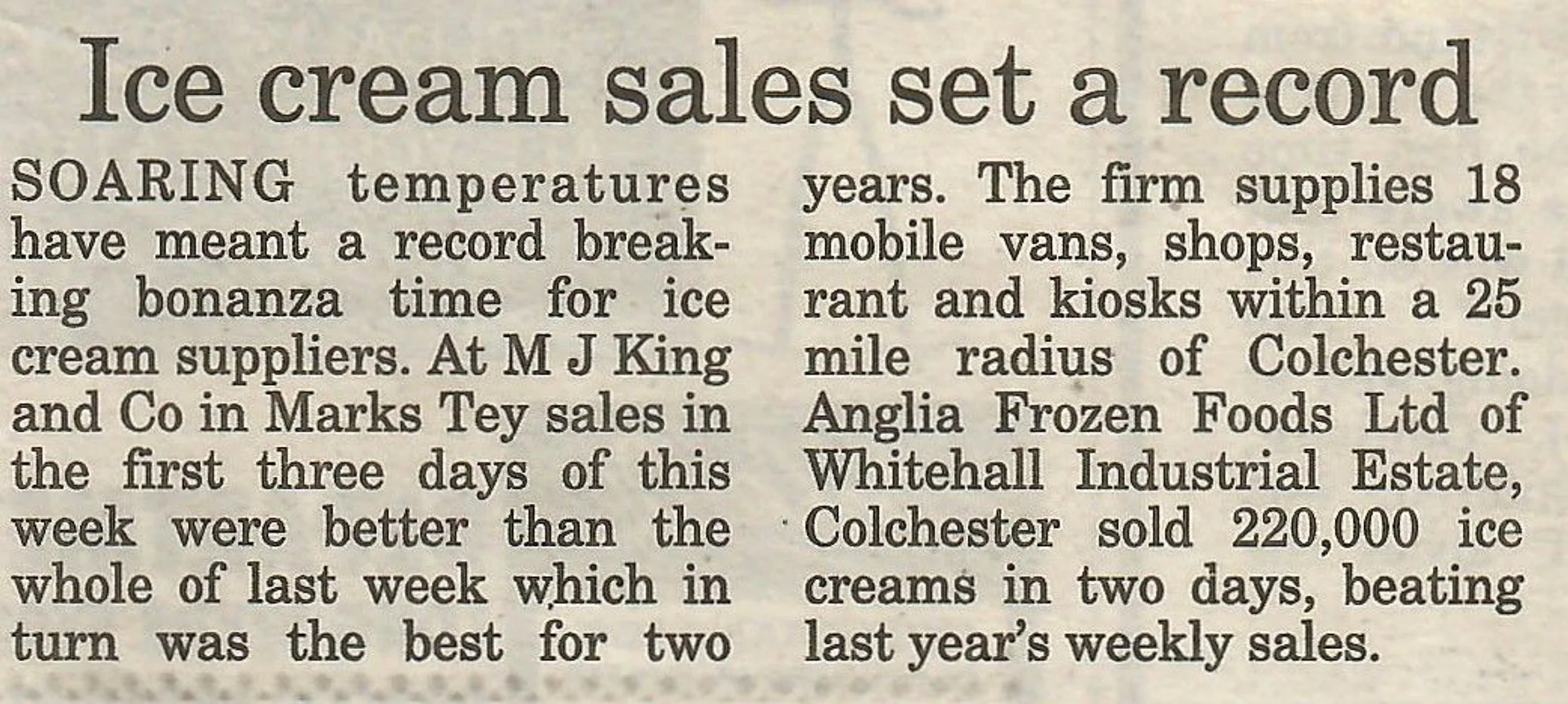 Newspaper report regarding ice cream sales in high temperatures.