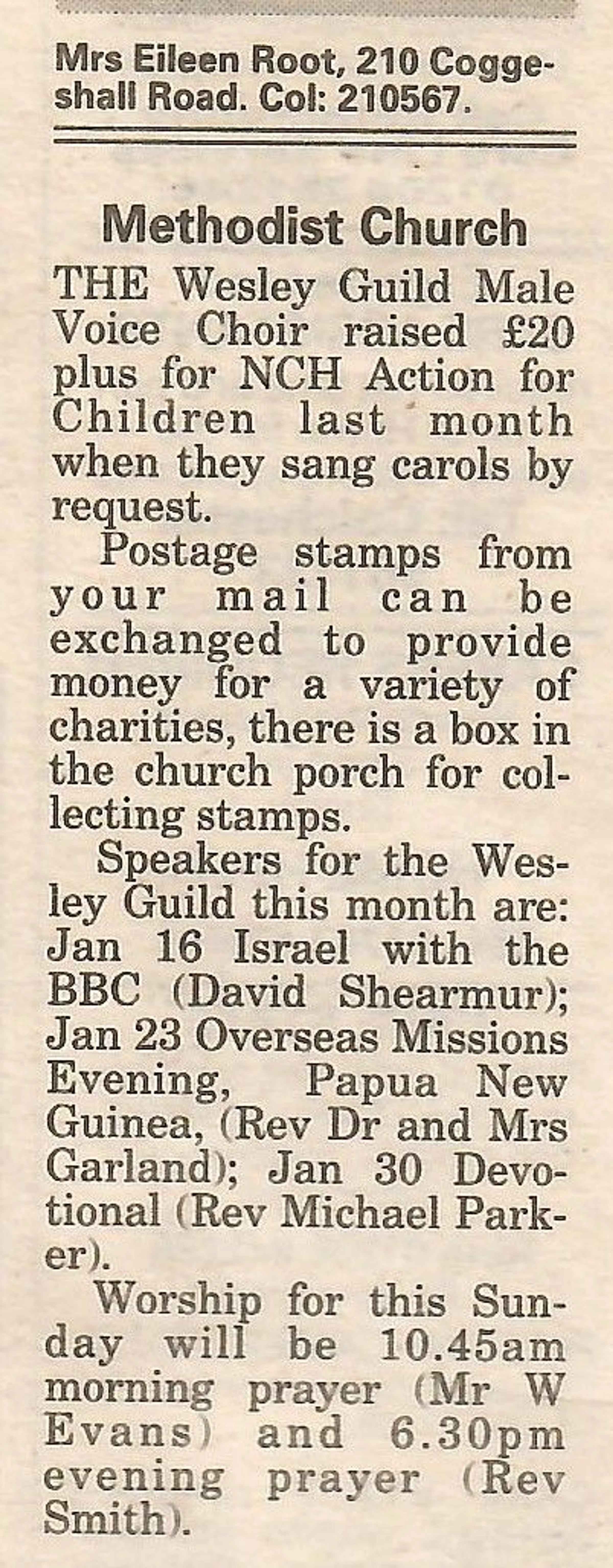 Village news column regarding Methodist Church events.