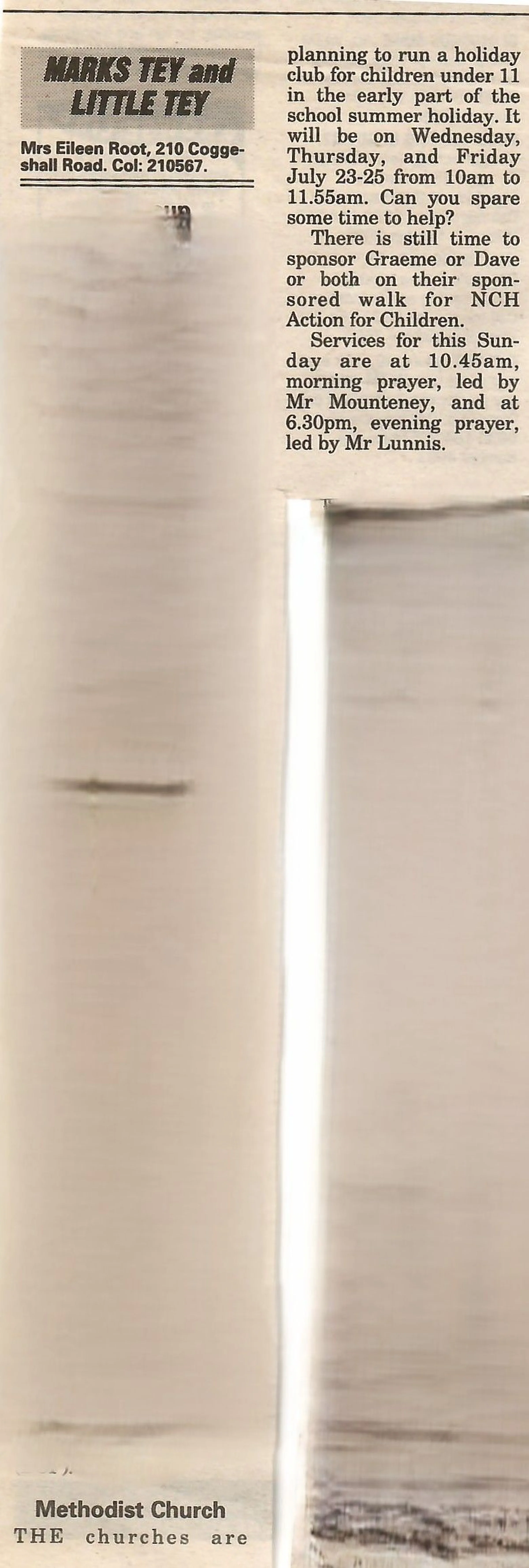 Village news column regarding Methodist Church services.
