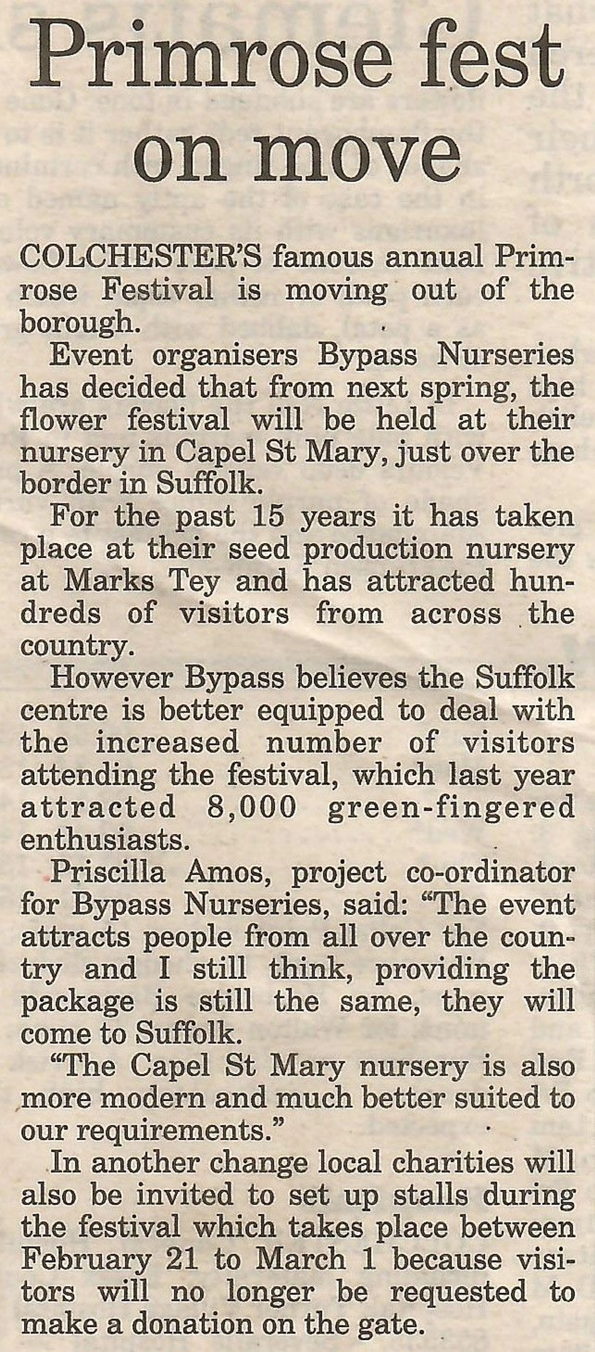 Newspaper report on the end of the primrose festival at By-pass nurseries.