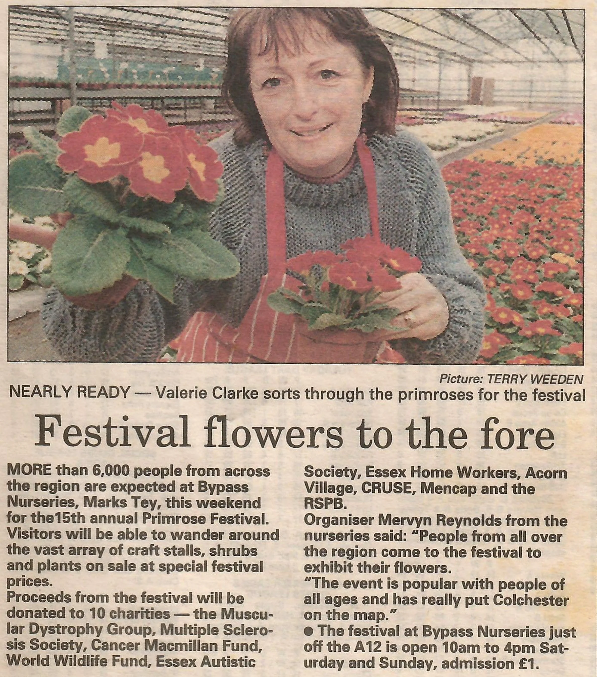 Newspaper photograph and report on the primrose festival at By-pass nurseries.