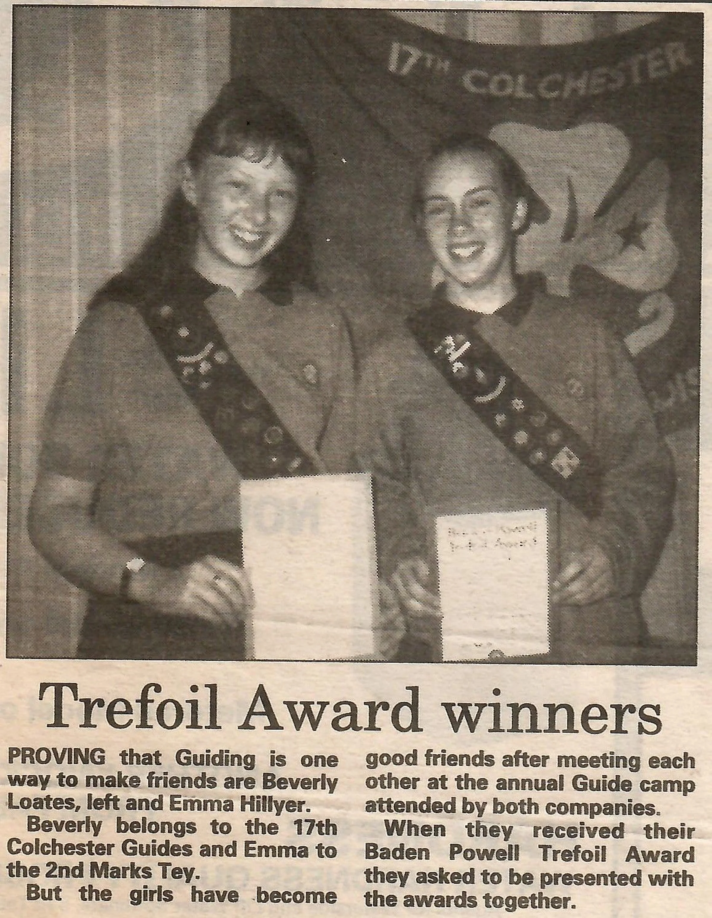 Article and photograph reporting on the Trefoil Awards received by two guides.
