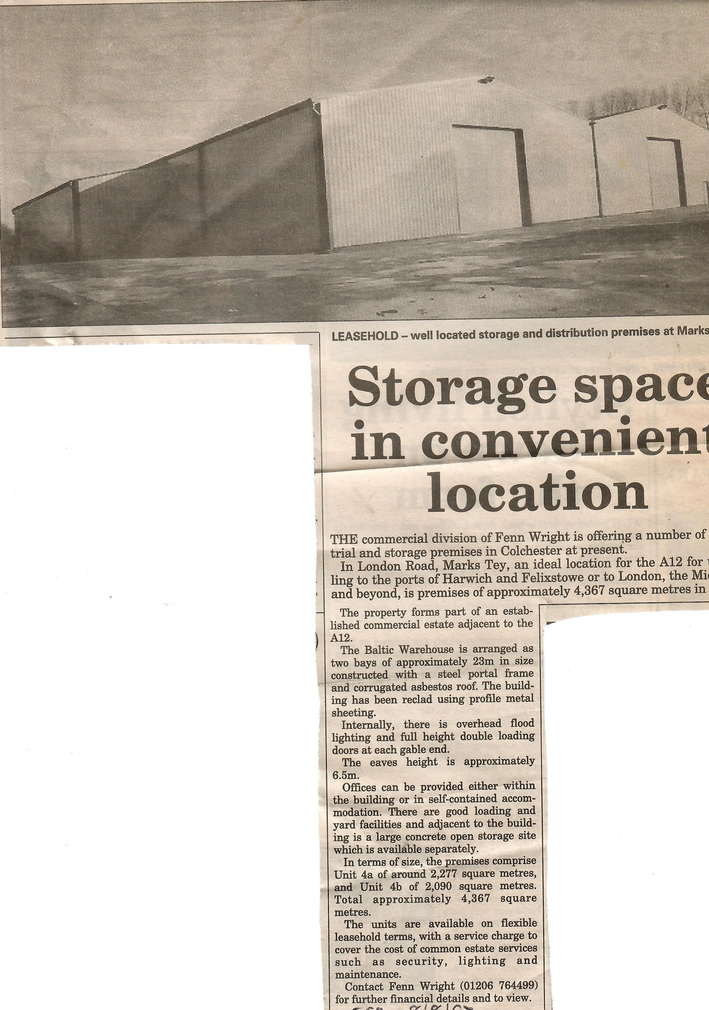Newspaper advertisement for warehouse storage space.