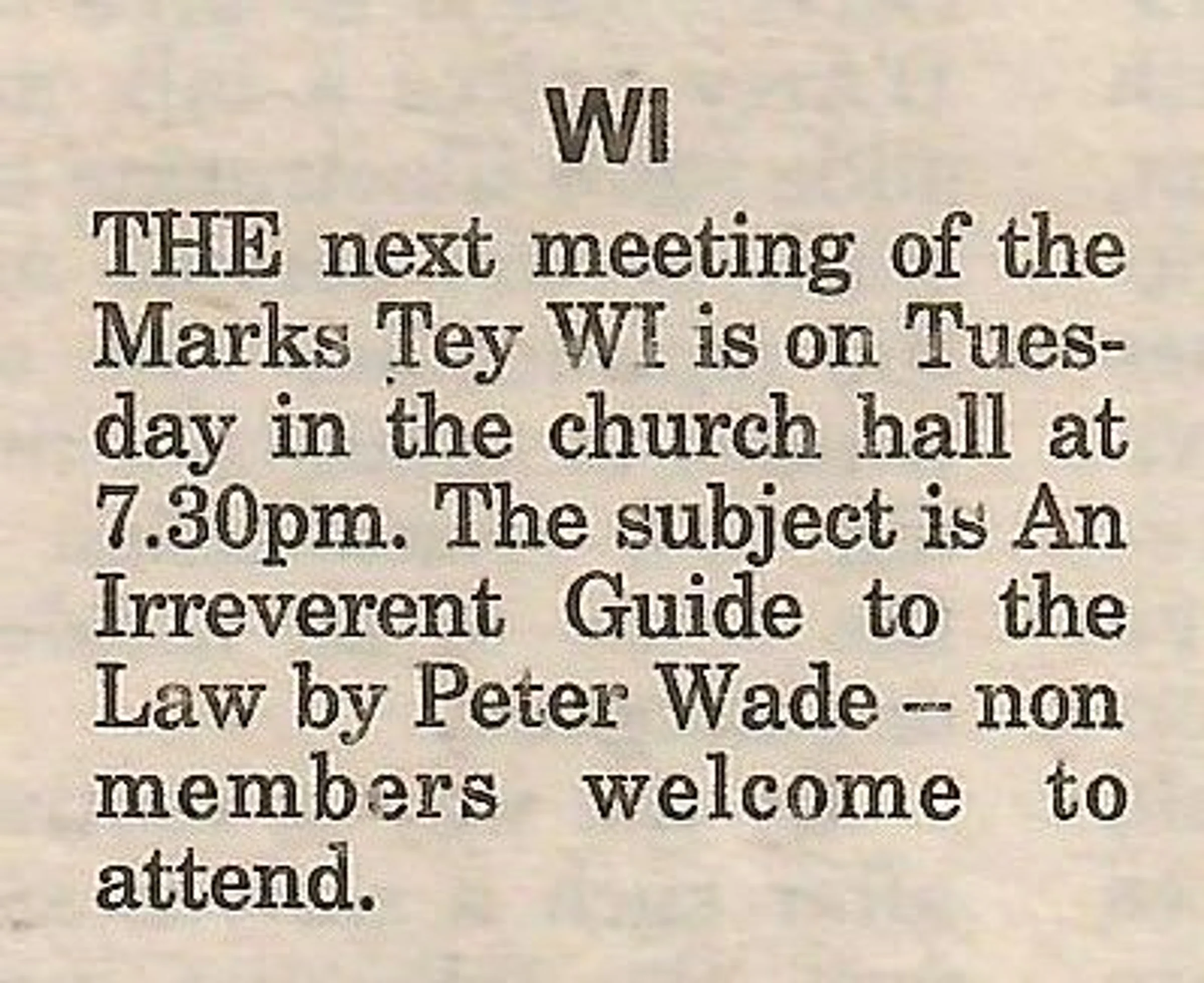 Local news column invitation to the July meeting of the Women's Institute.