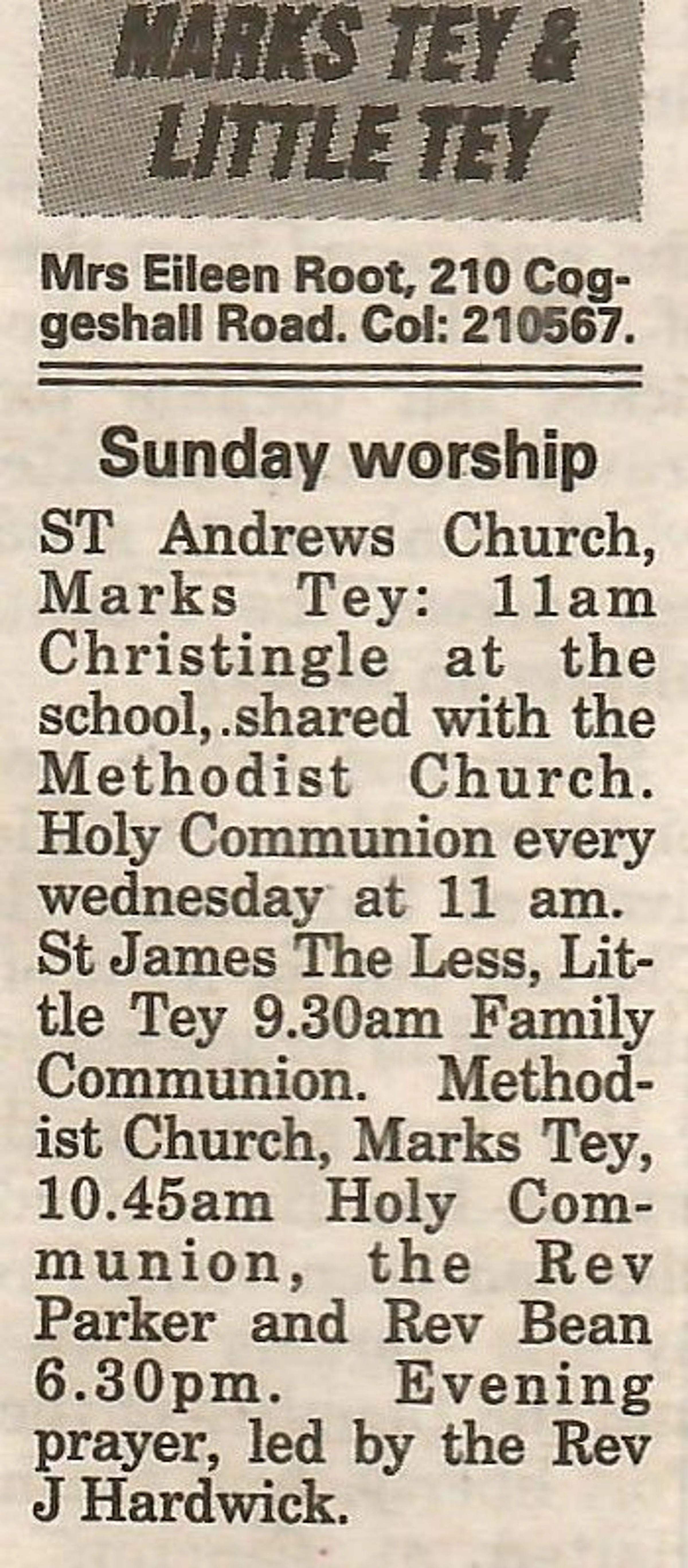 St Andrew's Church documents, St Andrew's Primary School, Marks Tey Methodist Church, St James the Less, Little Tey