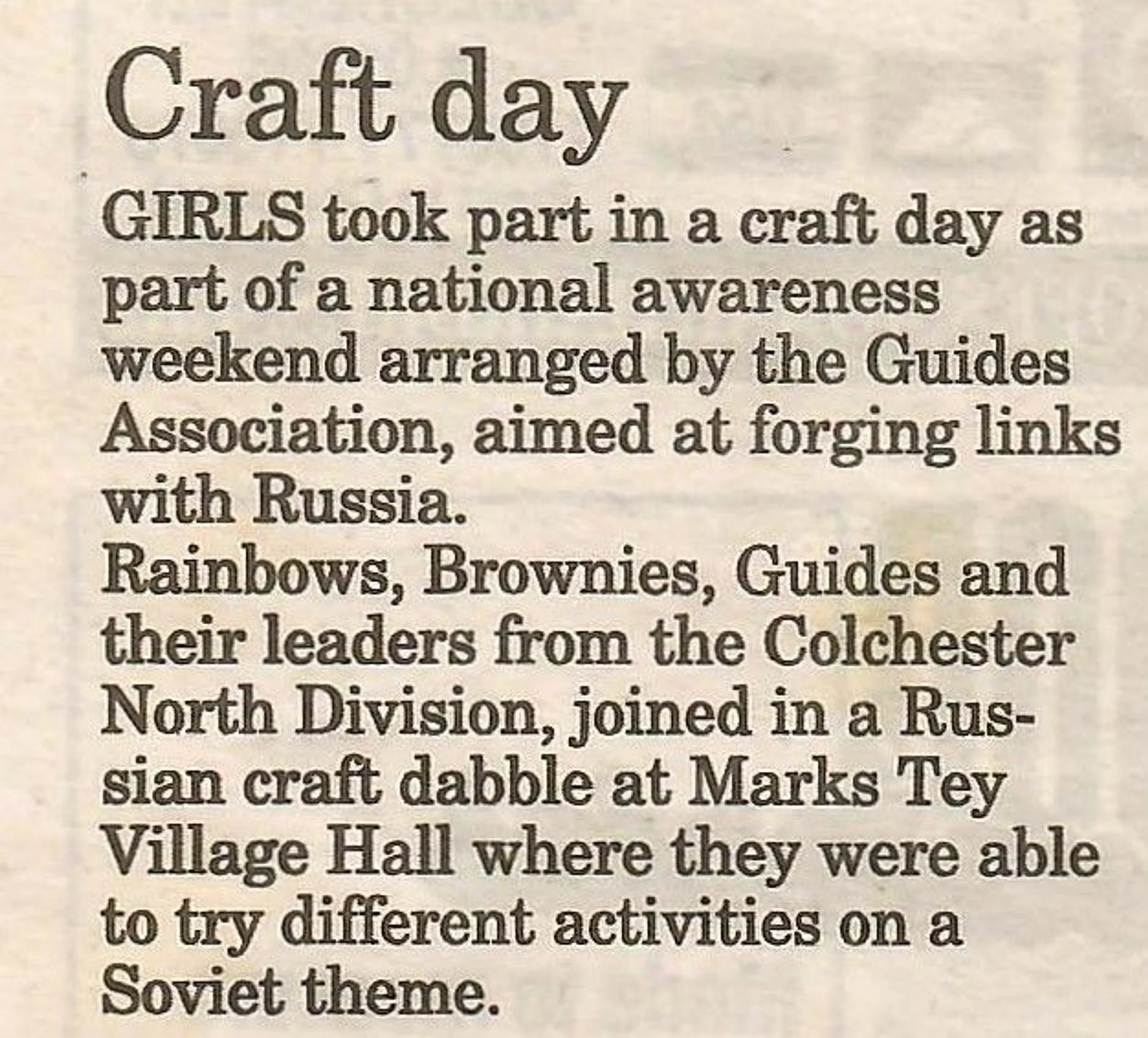 Article regarding a craft day for the Rainbows, Brownies and Guides.