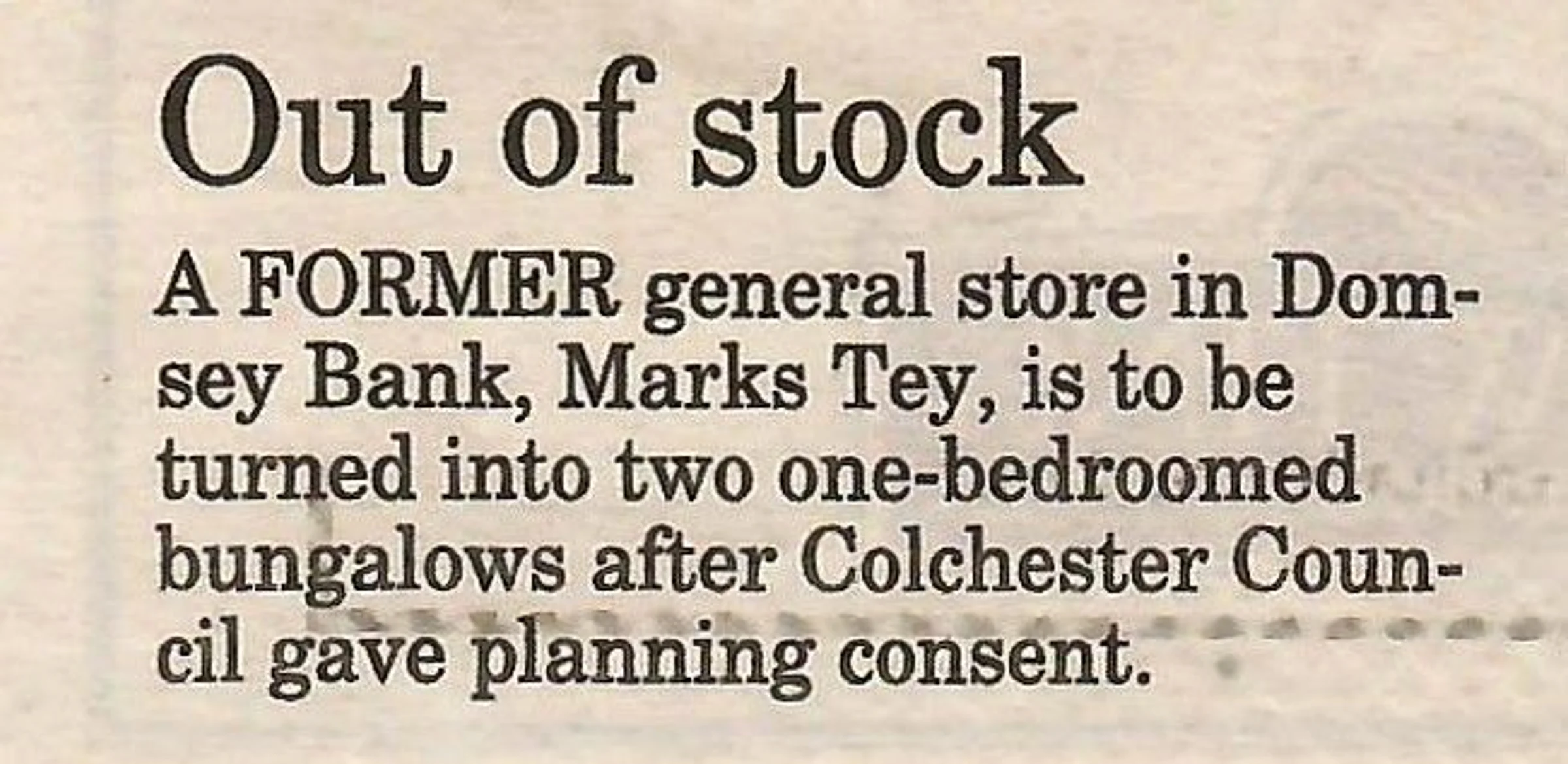 Newspaper report regarding the conversion of the former shop to housing.