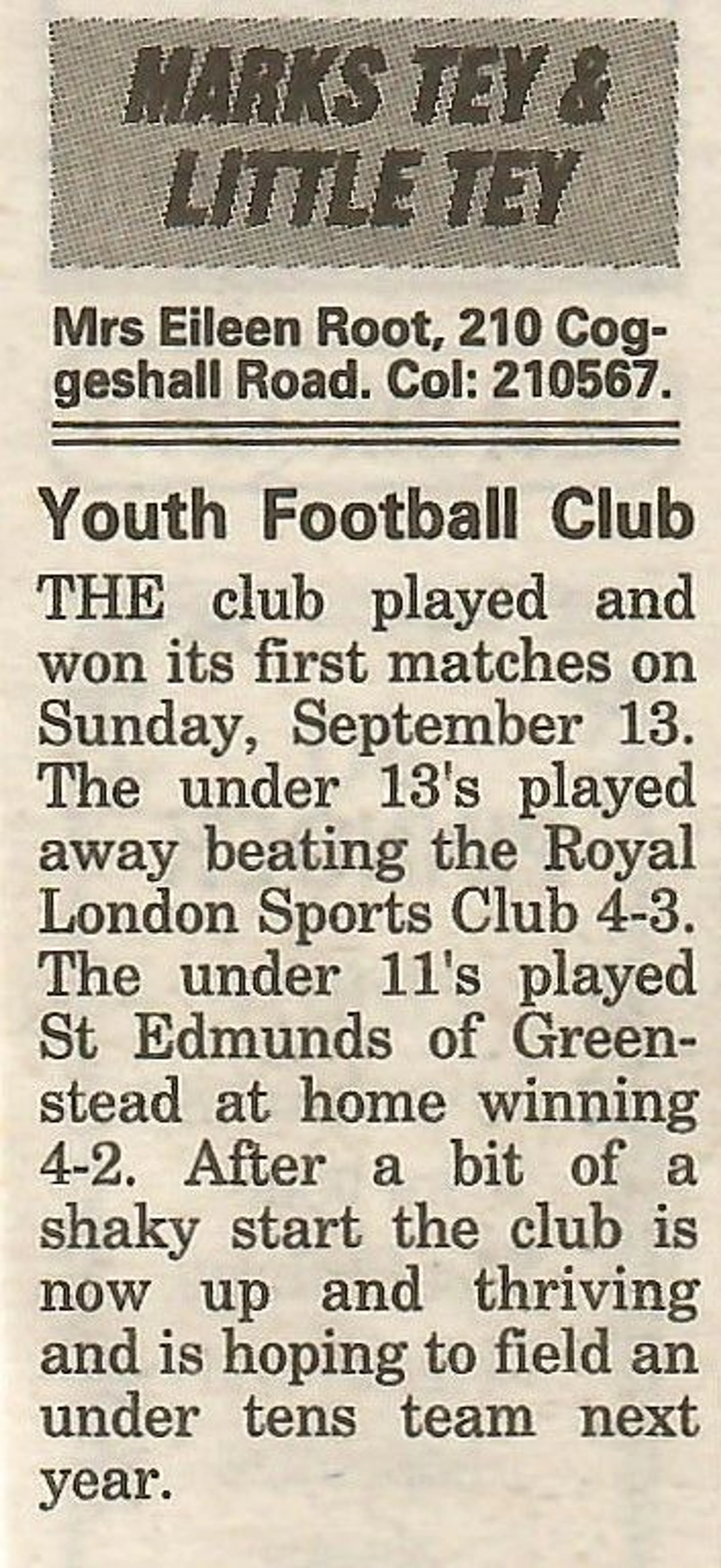 Village news column reporting on the Youth Football Club.