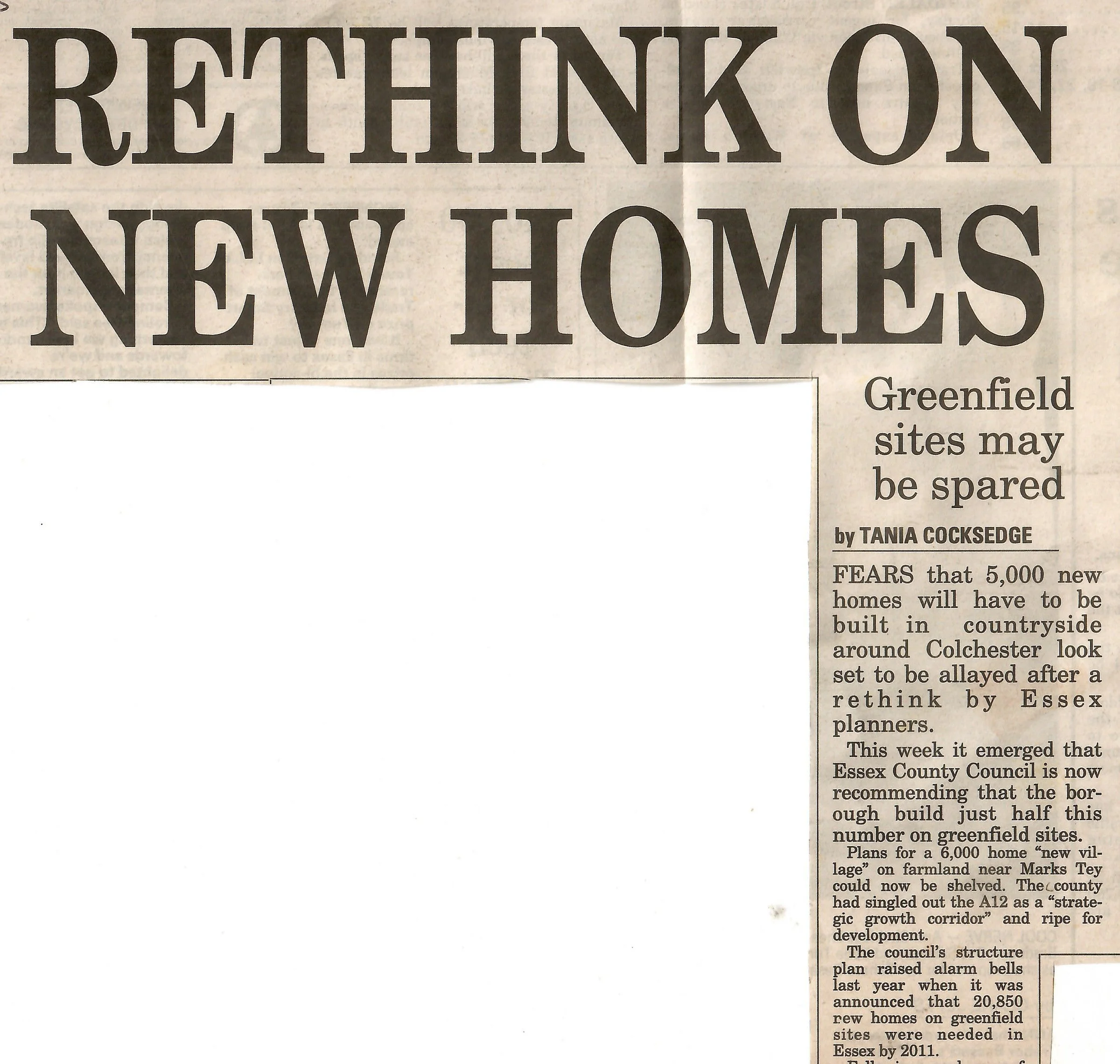 Newspaper report regarding proposals for a new village adjacent to Marks Tey.