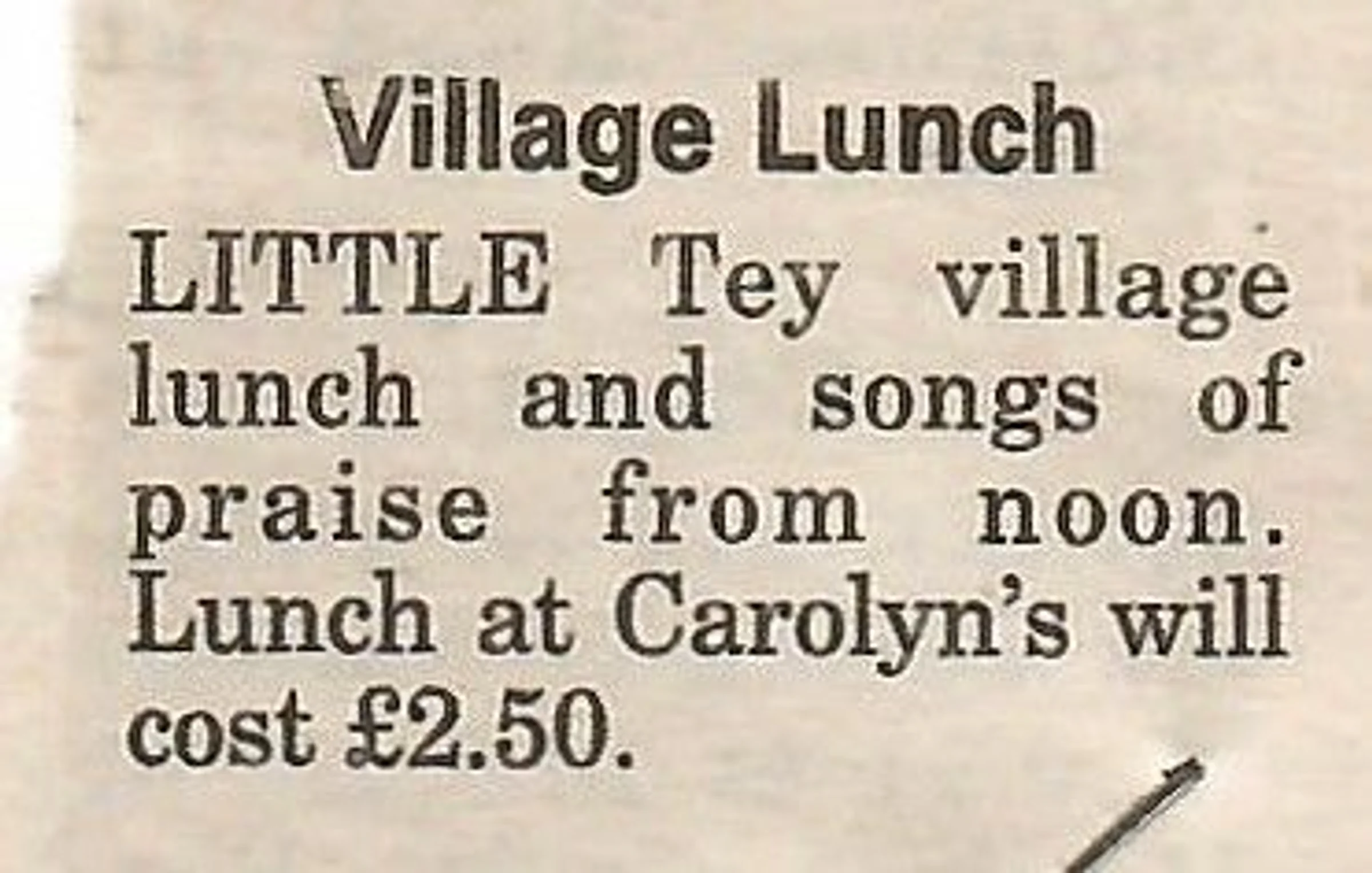 Village news column regarding a village lunch in Little Tey.