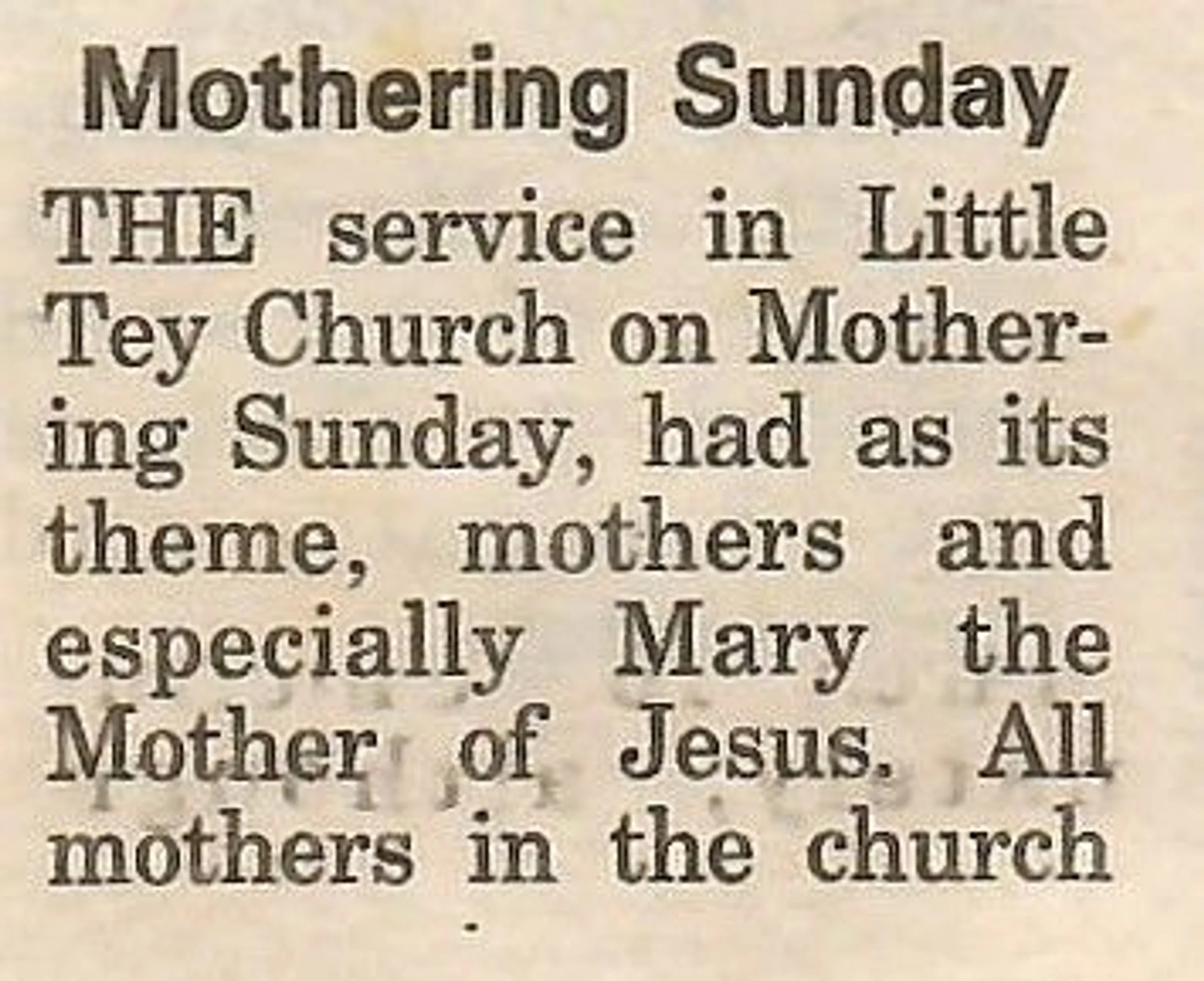 Village news column reporting on Mothering Sunday.