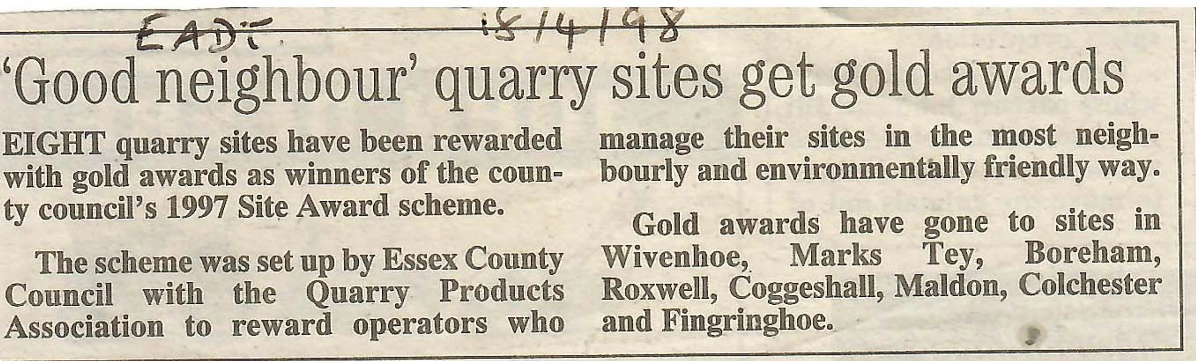 'Good neighbour' quarry sites get gold awards