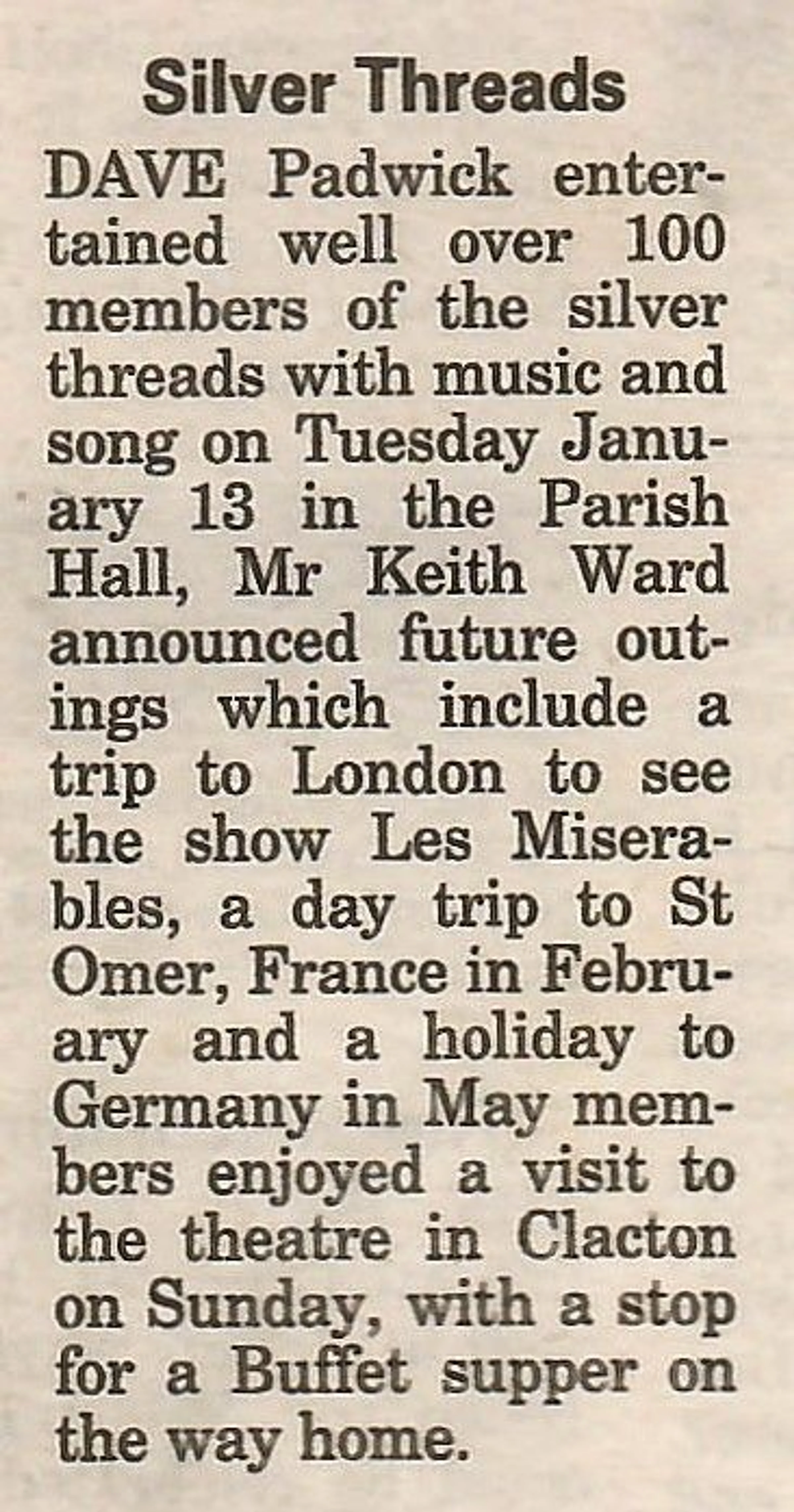 Village news column reporting on the Silver Threads.