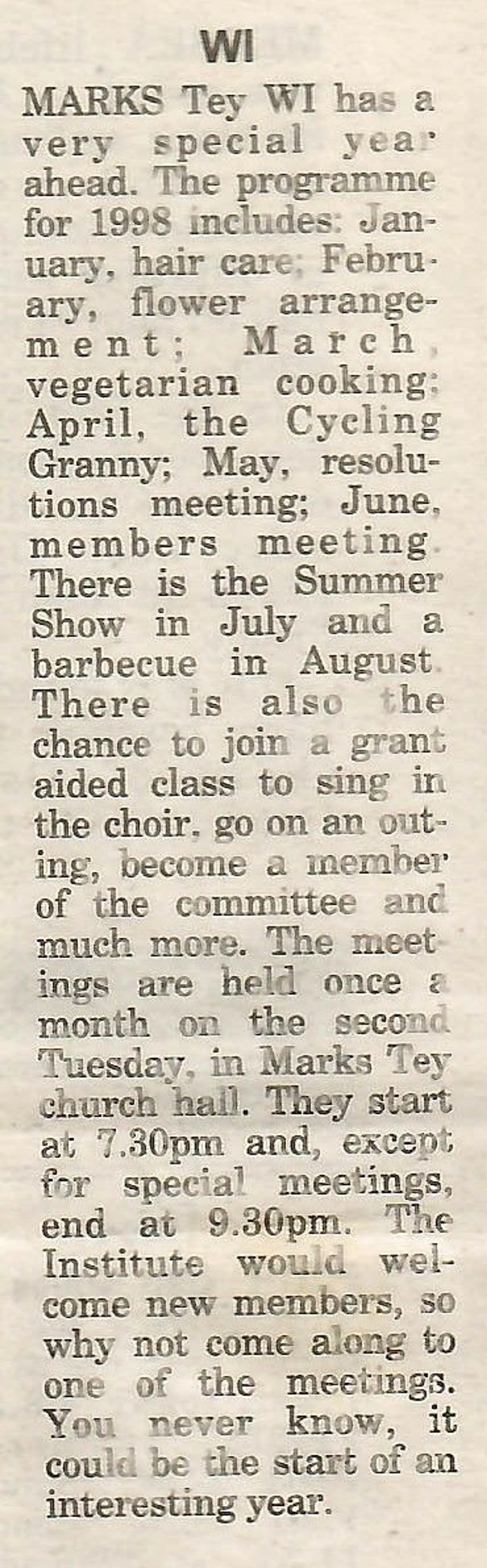 Local news column regarding the planned meetings of the year of the Women's Institute.