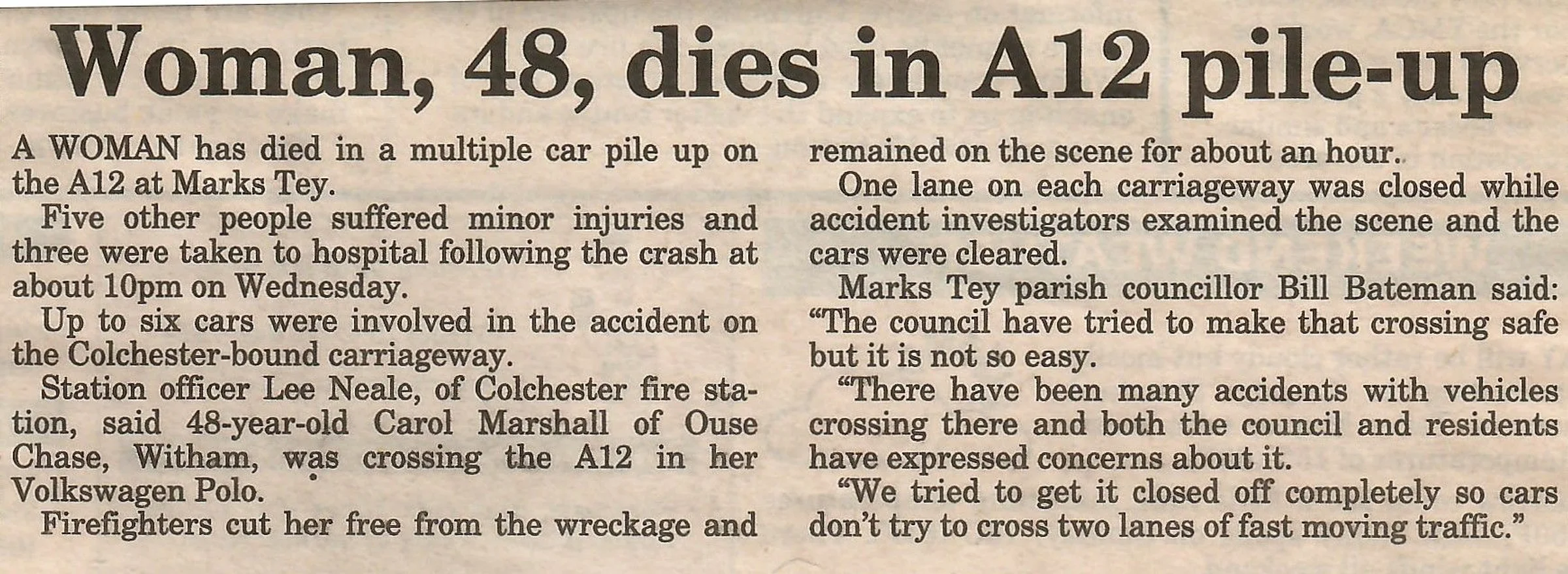 Woman, 48, dies in A12 pile-up