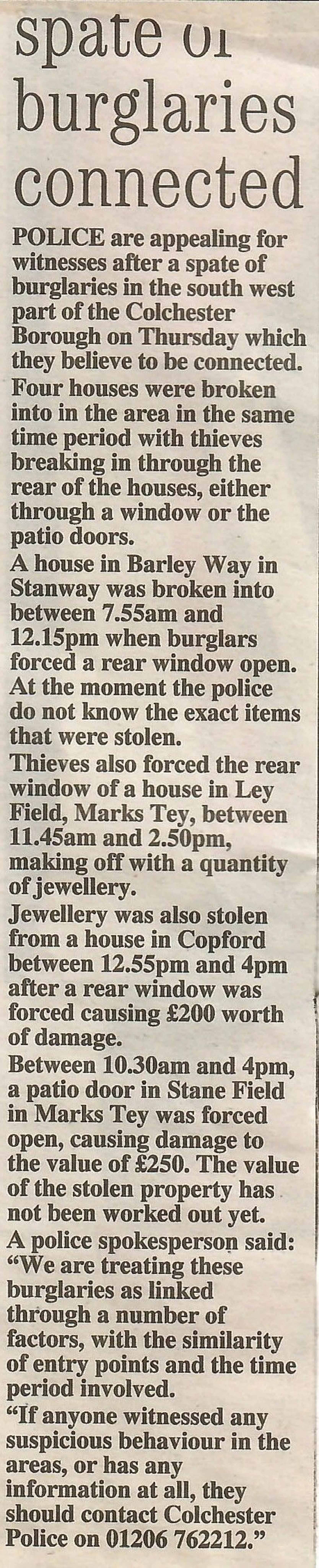 Spate of burglaries connected