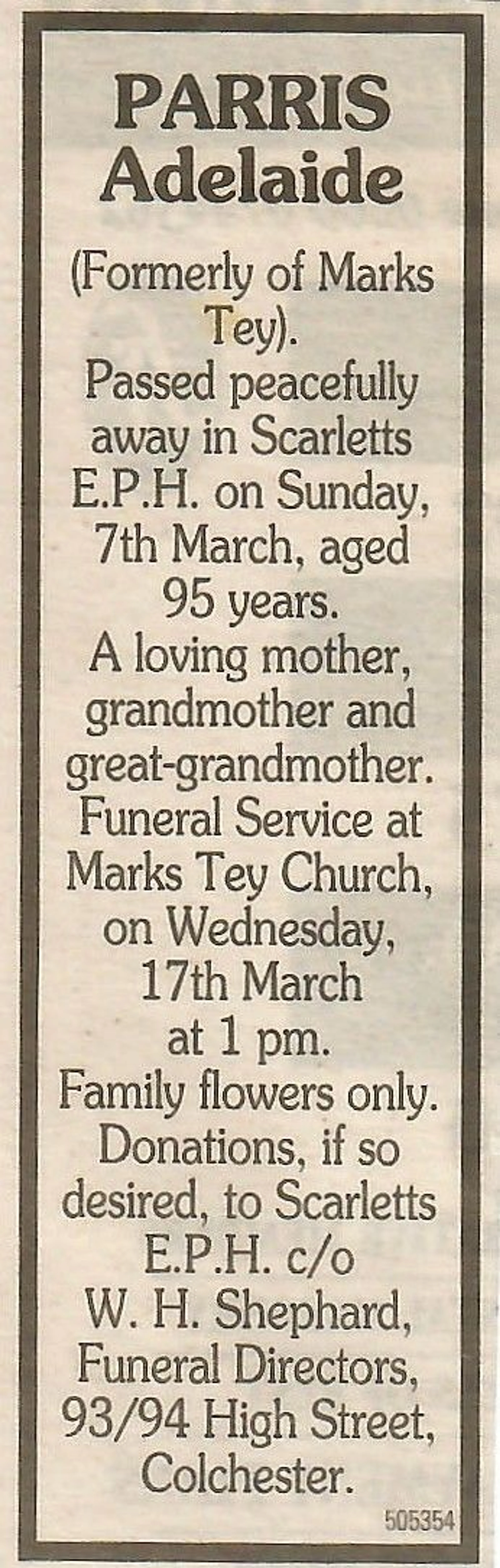 Newspaper death notice.