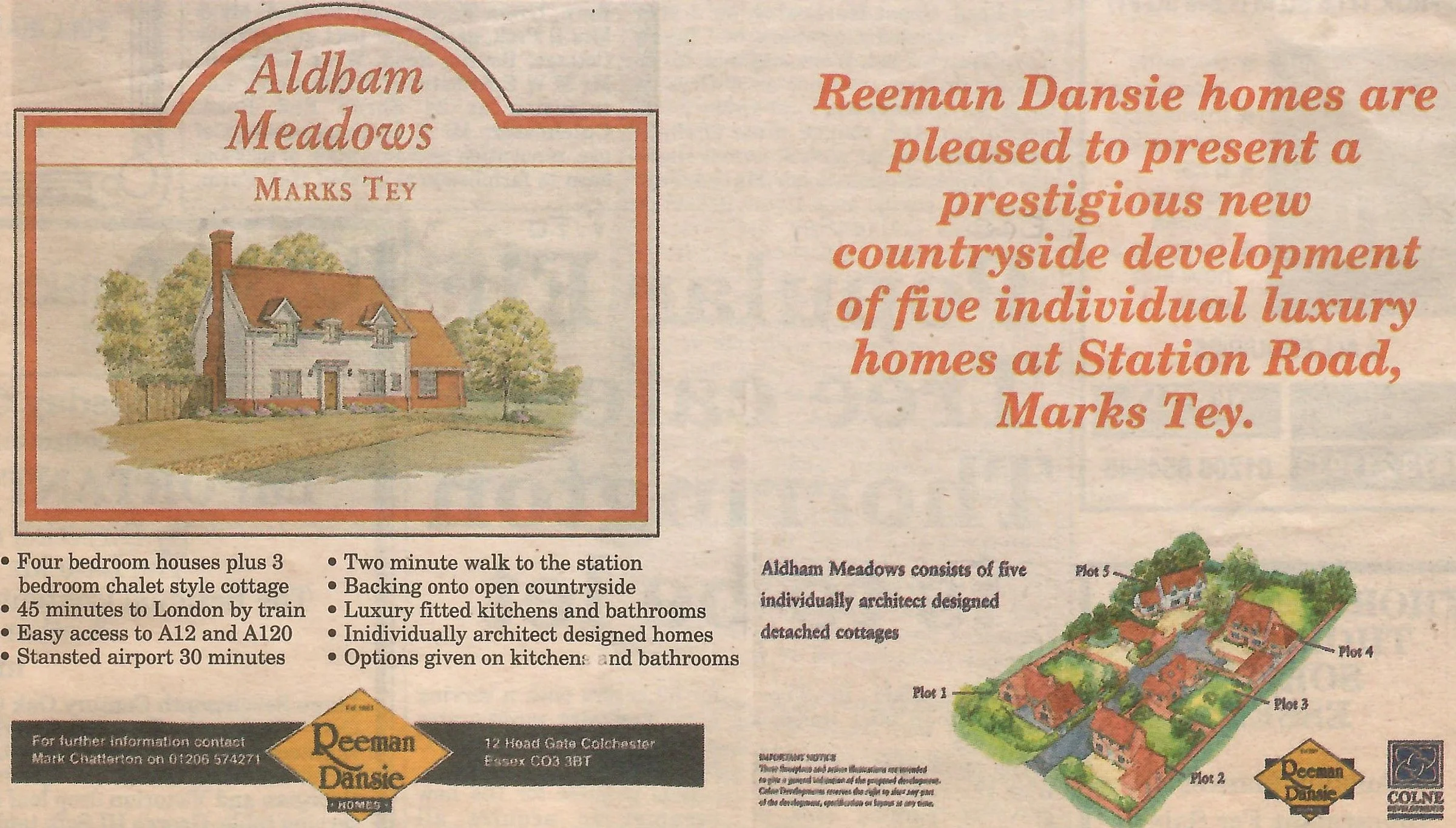 Newspaper advert for a houses at Aldham Meadows.