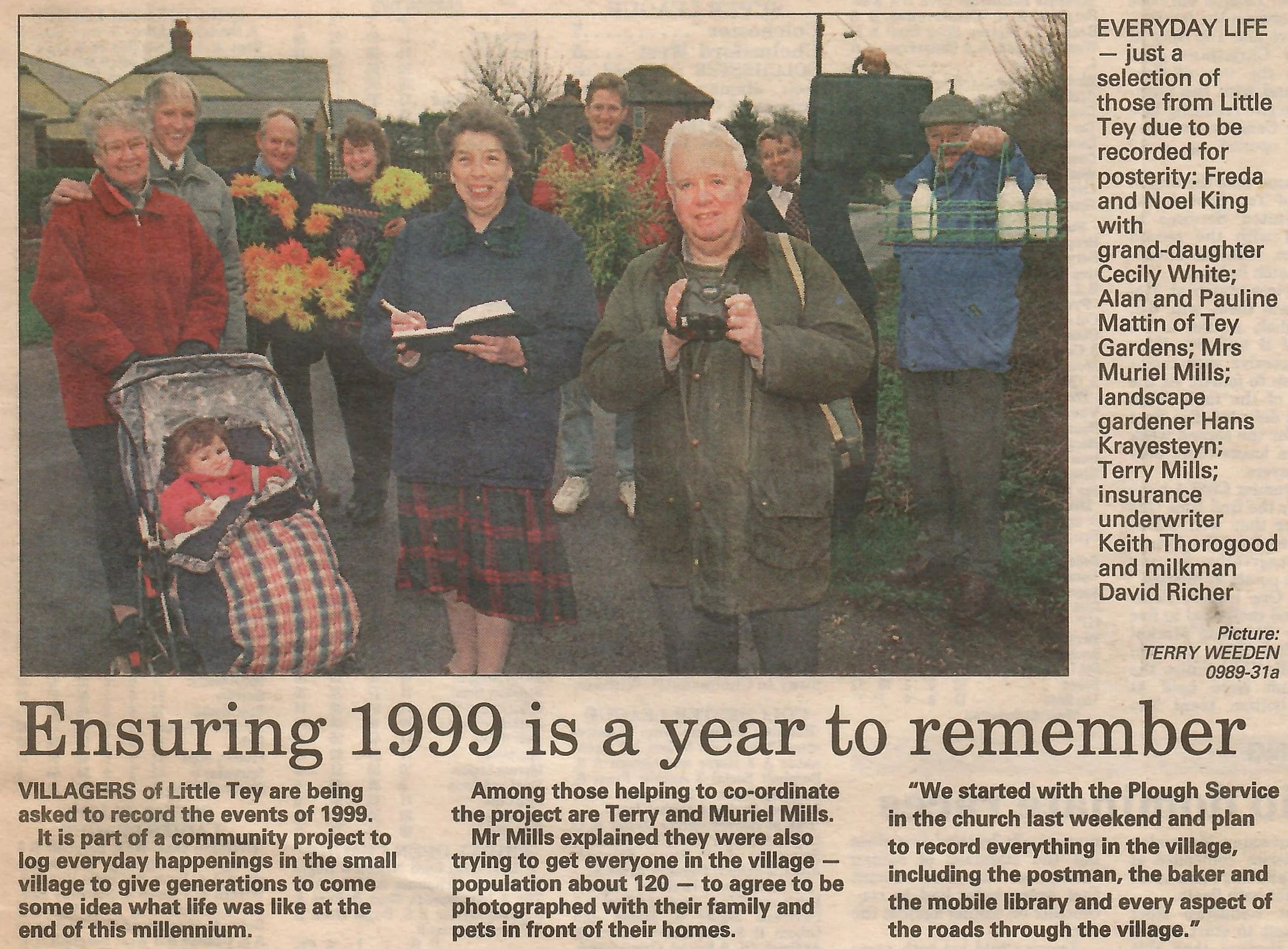 Newspaper photograph and report regarding the Little Tey Millennium project.