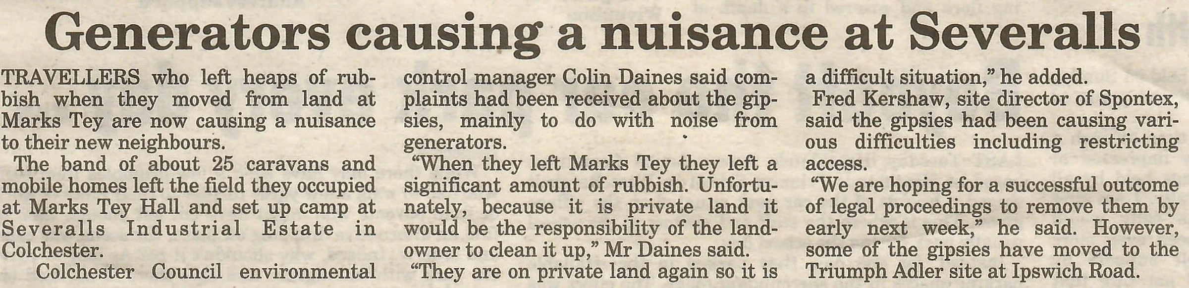 Newspaper report regarding a traveller community who had resided at Marks Tey Hall.