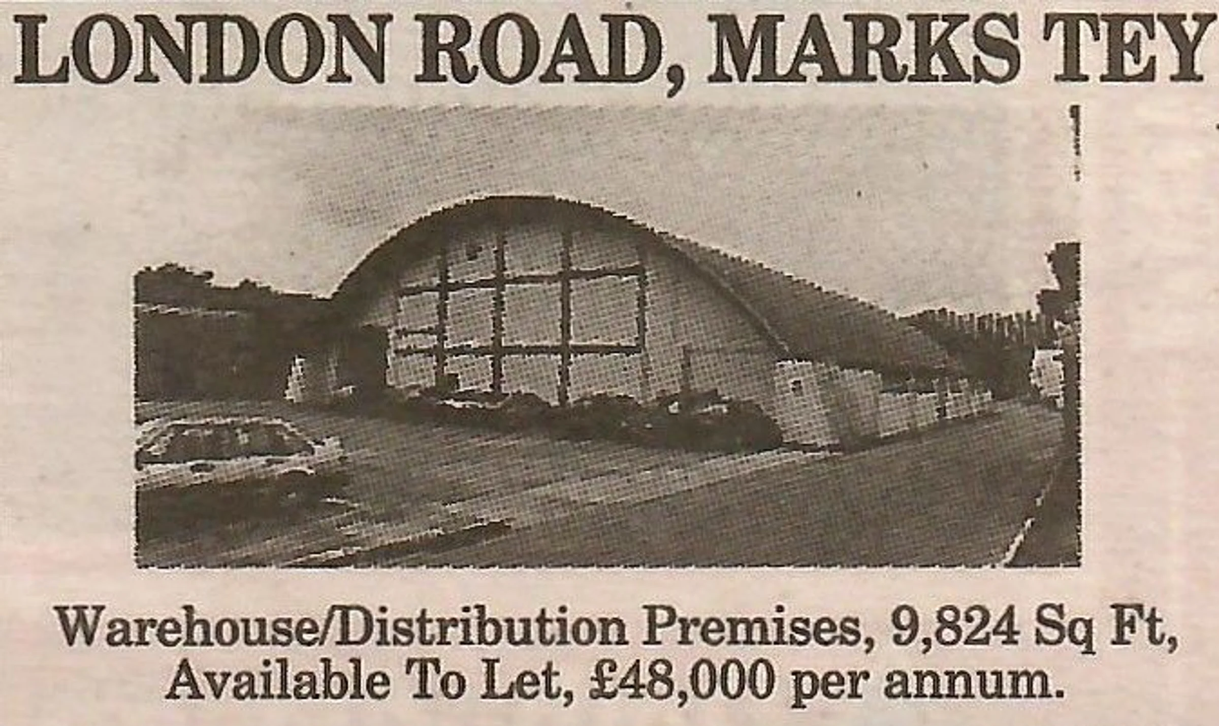 Newspaper advertisement for warehosue premises.