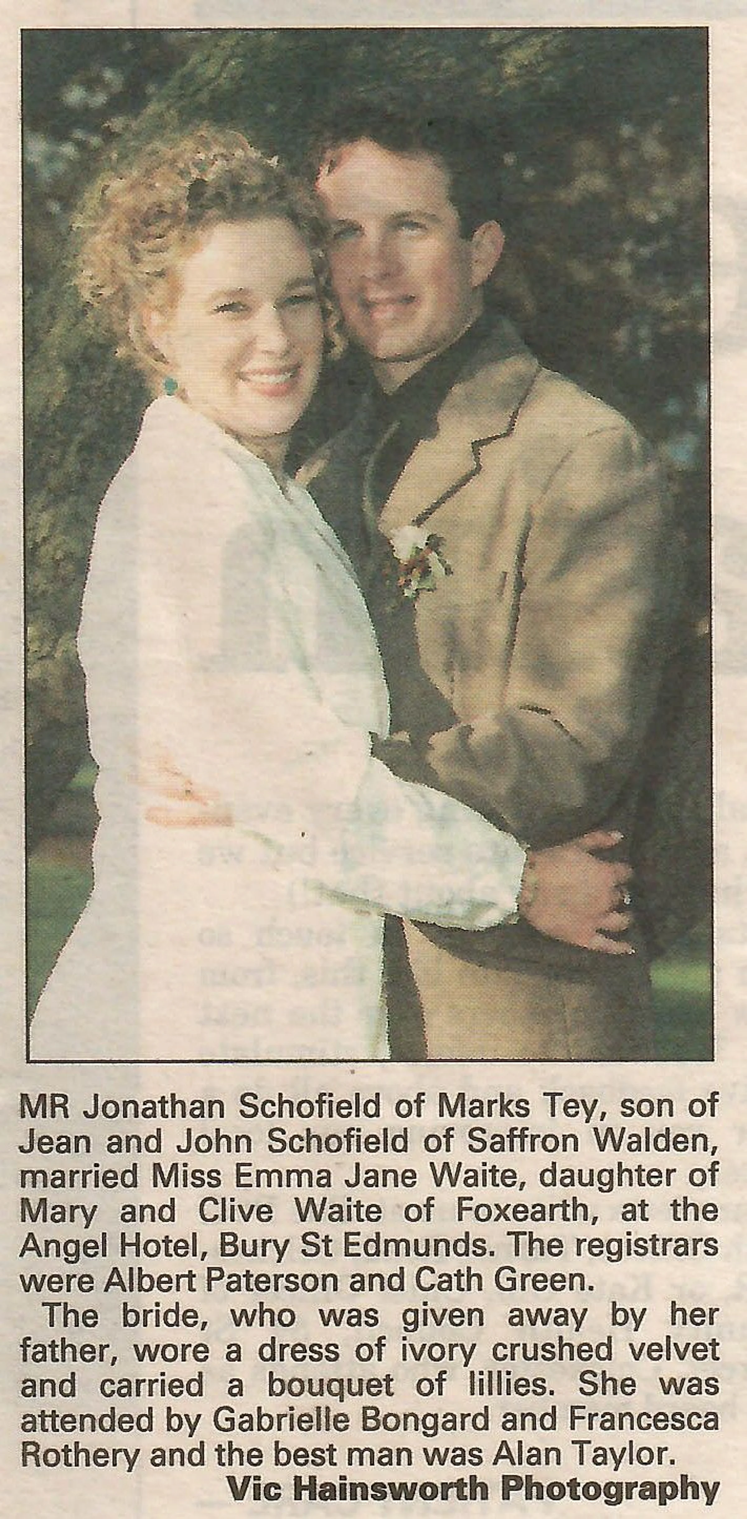 Newspaper wedding announcement.