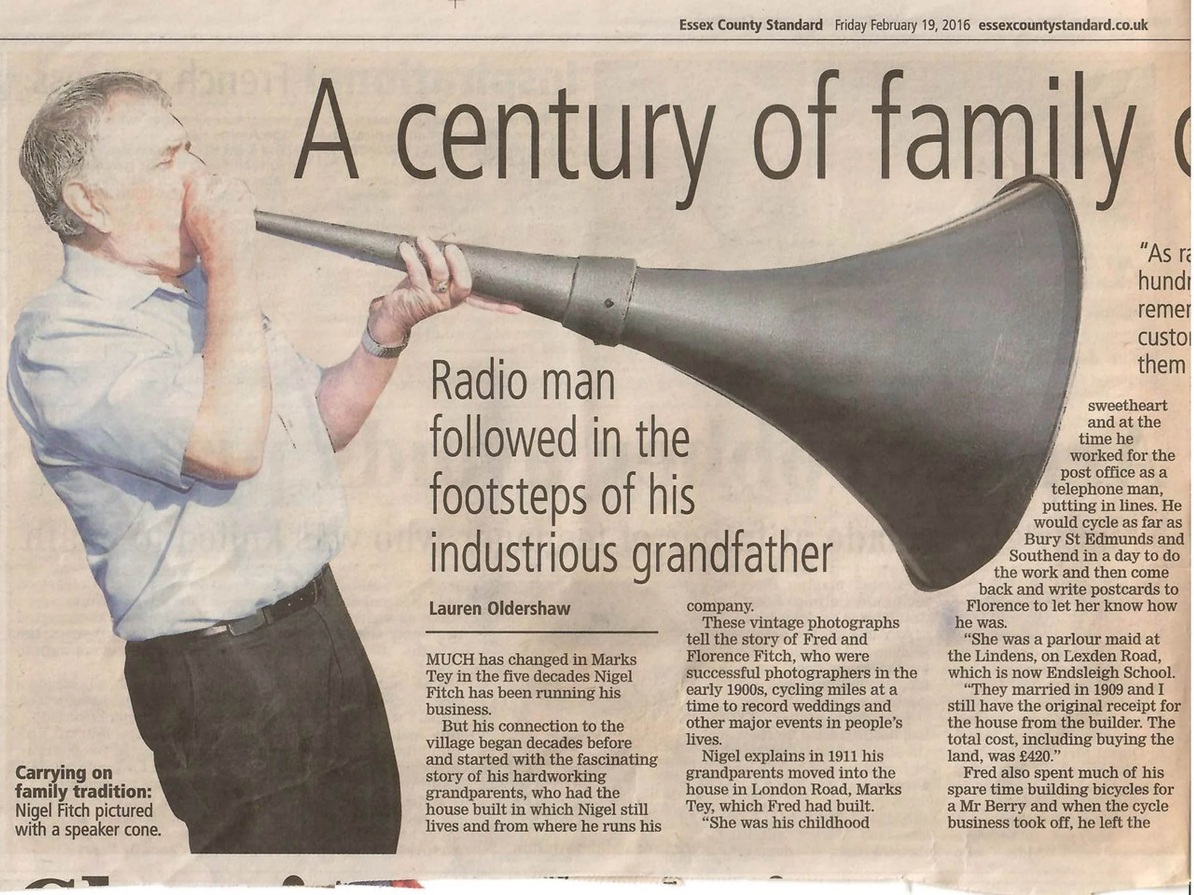 Nigel Fitch newspaper article, 19 February 2016