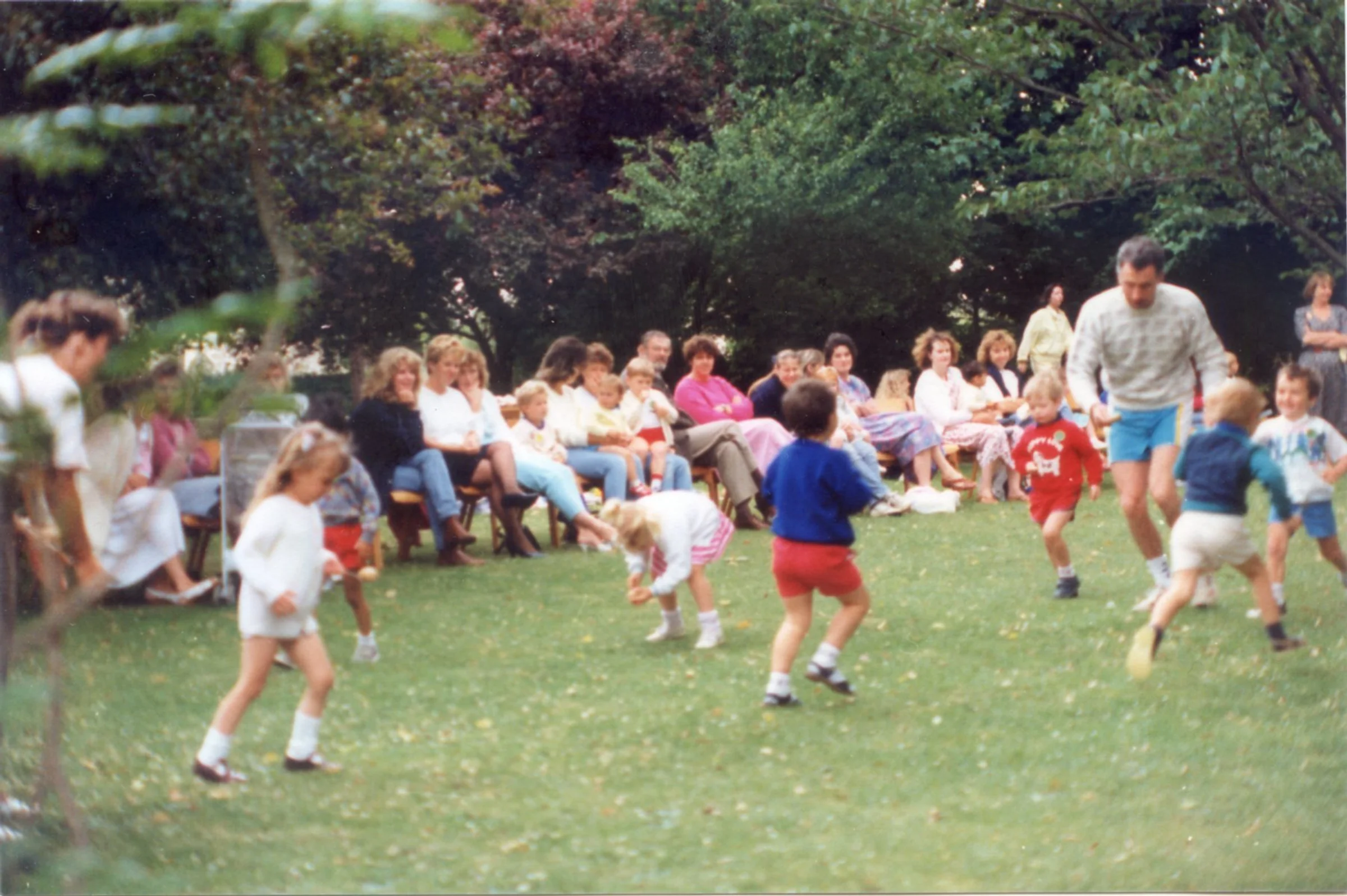 Playgroup sports on the Rectory lawn, 1990