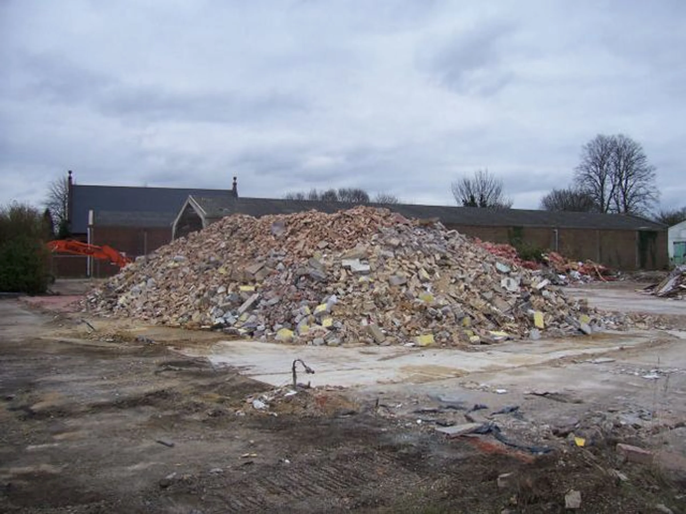 A pile of rubble from the demolishing that had to be done to build the new flats at Point Chase. The Methodist church can be seen beyond.