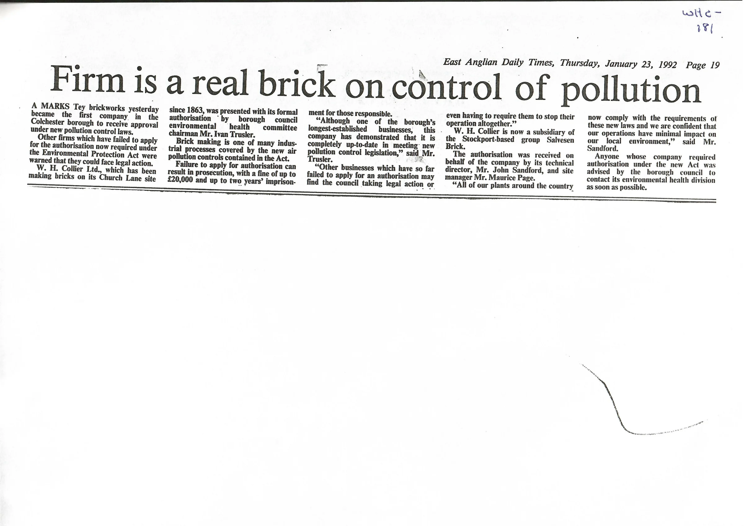Short article describing the signing of approval for W H Collier Ltd under new pollution laws.