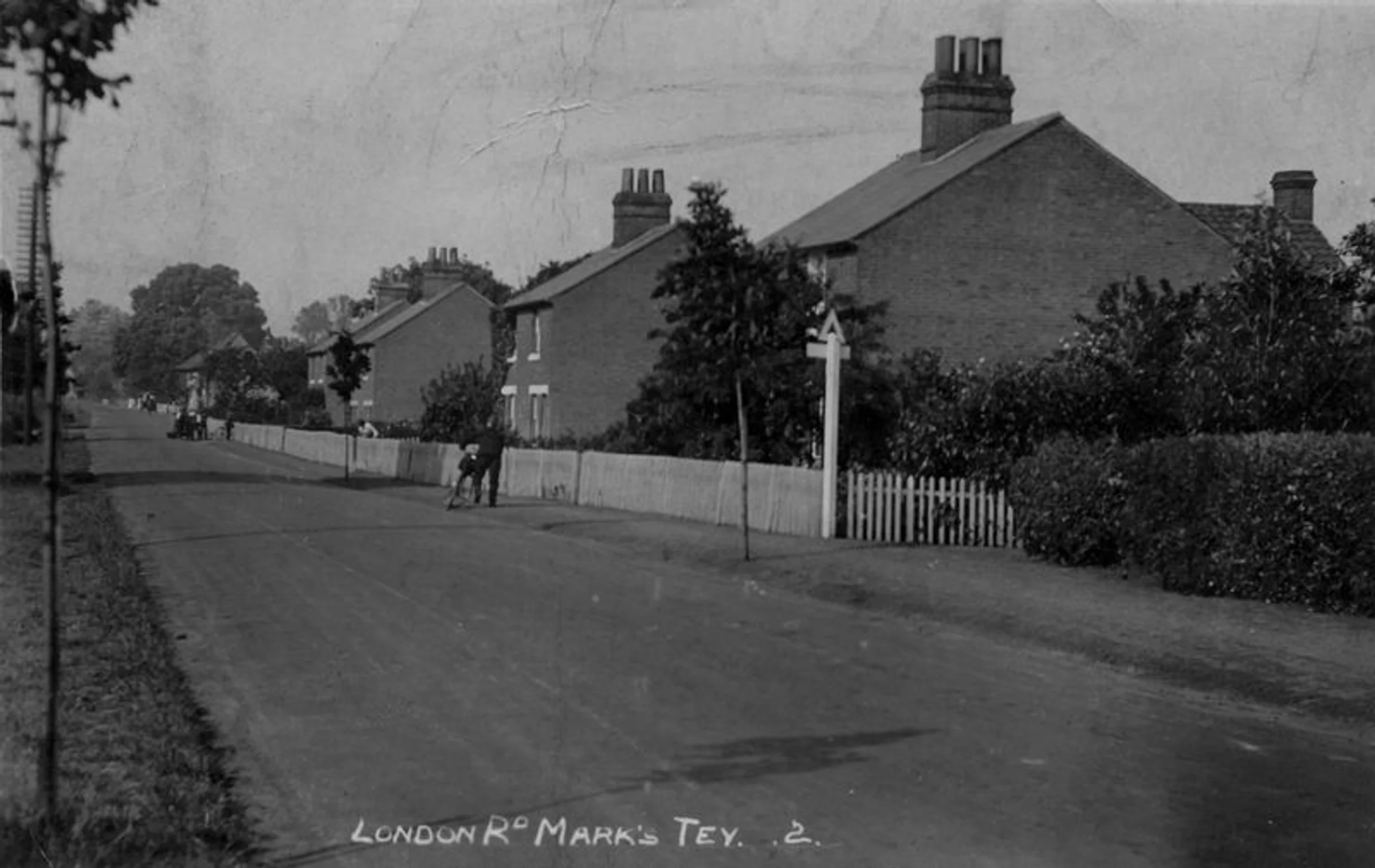 This postcard has been printed with London Road, Marks Tey 2. Not quite certain yet whereabouts these houses were.