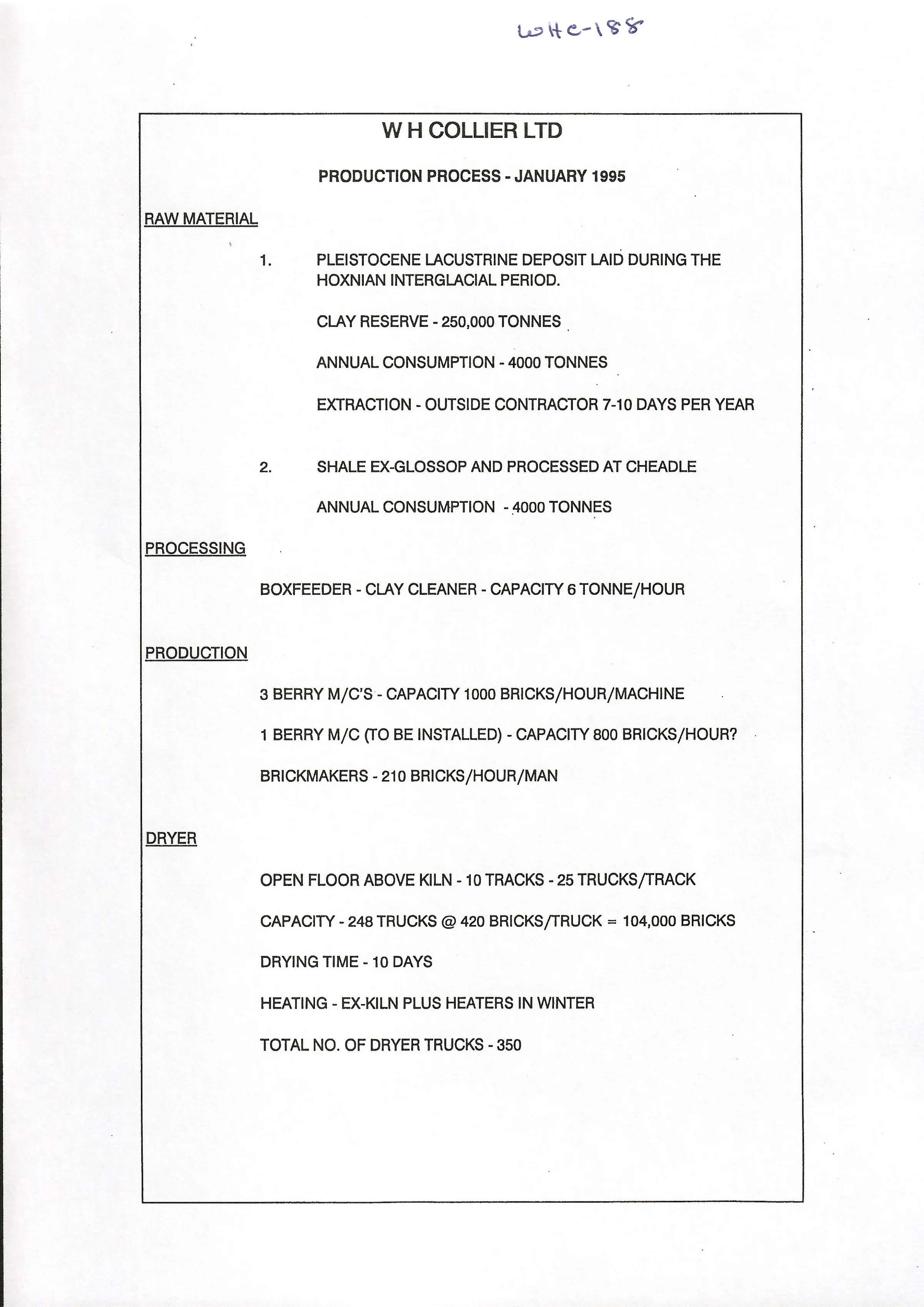 Description of W H Collier's production process.