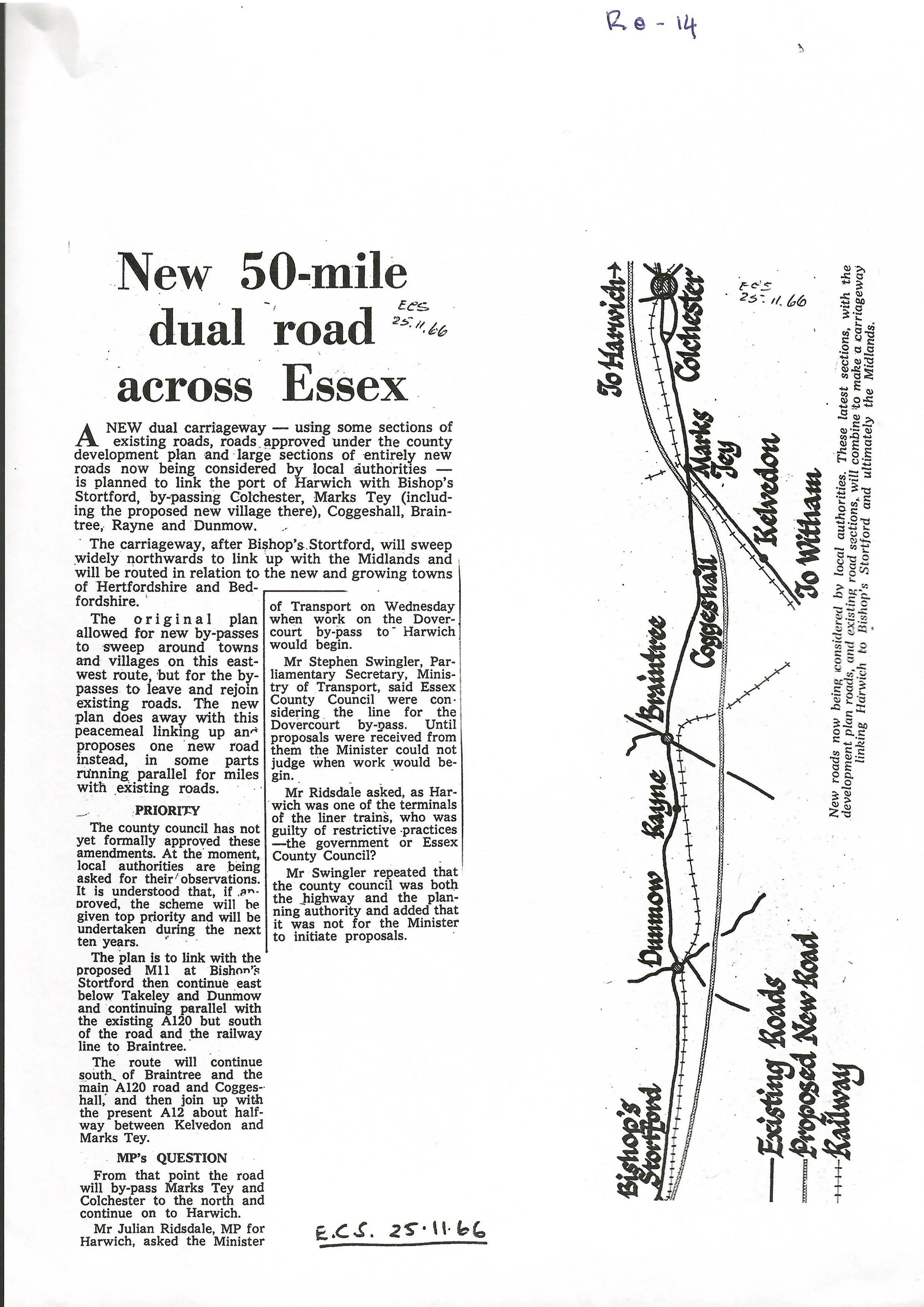 Report on proposed new roads in Essex.