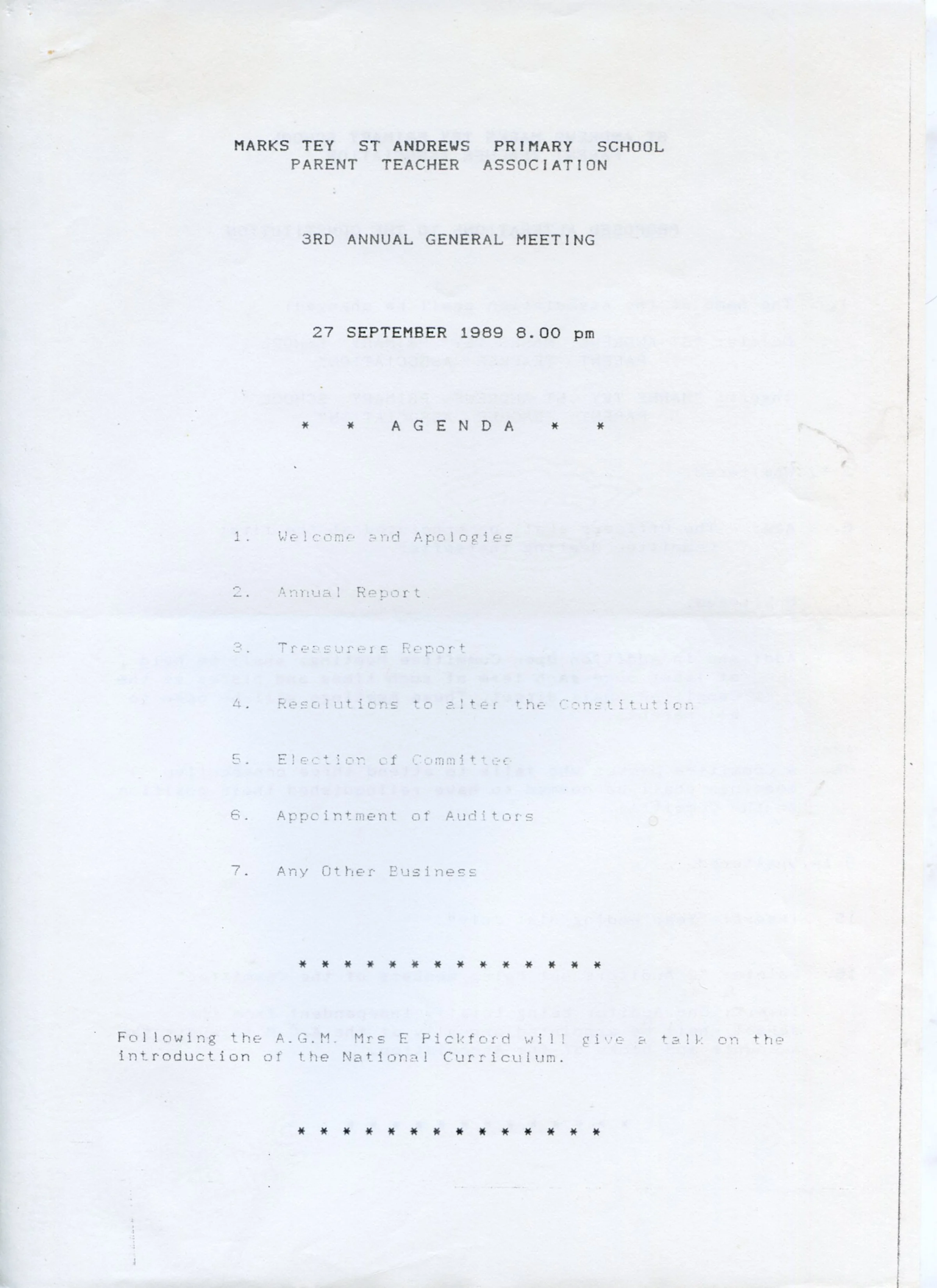 PTA AGM 1989