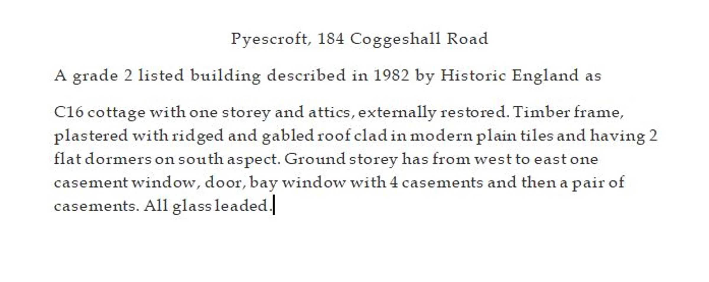 Pyescroft, 184 Coggeshall Road, story