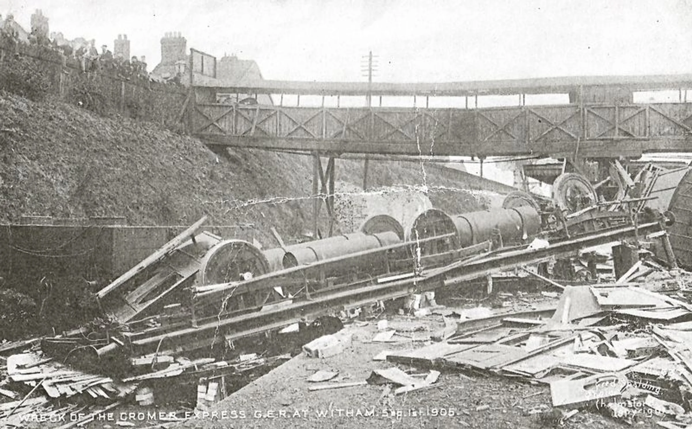 Published photograph of the "Wreck of the Cromer Express G.E.R. at Witham. Sep. 1st 1905".