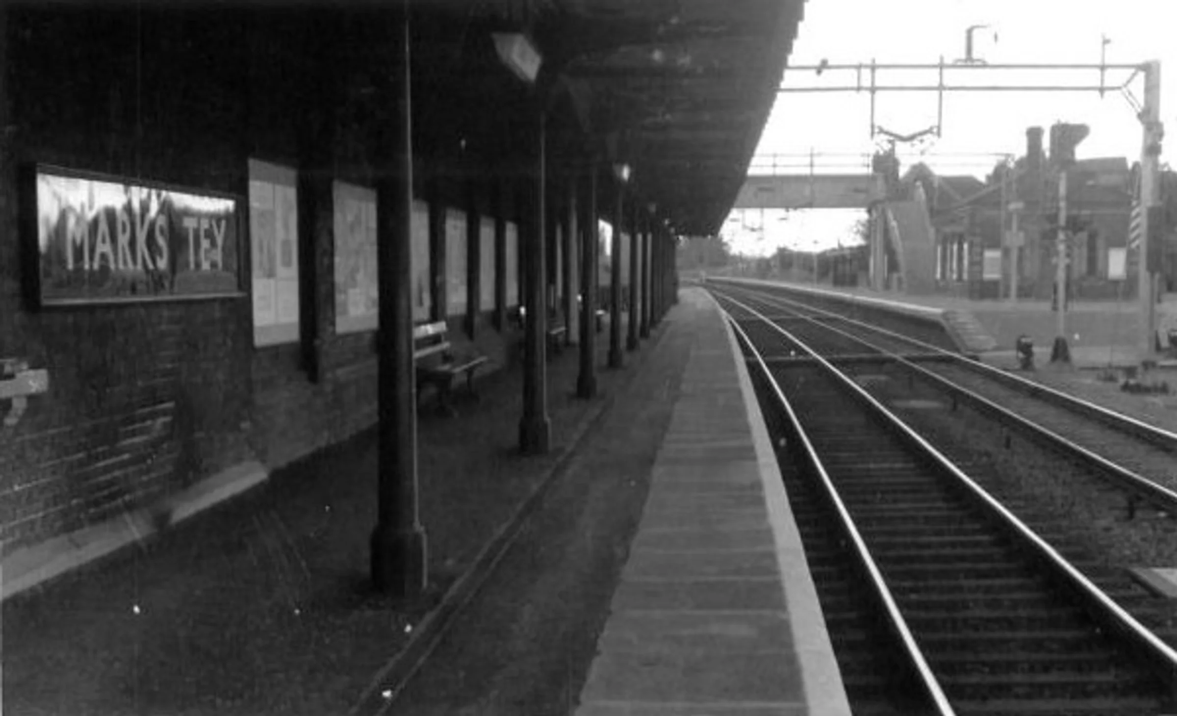 Historic photograph of Marks Tey station looking west from platform 1.