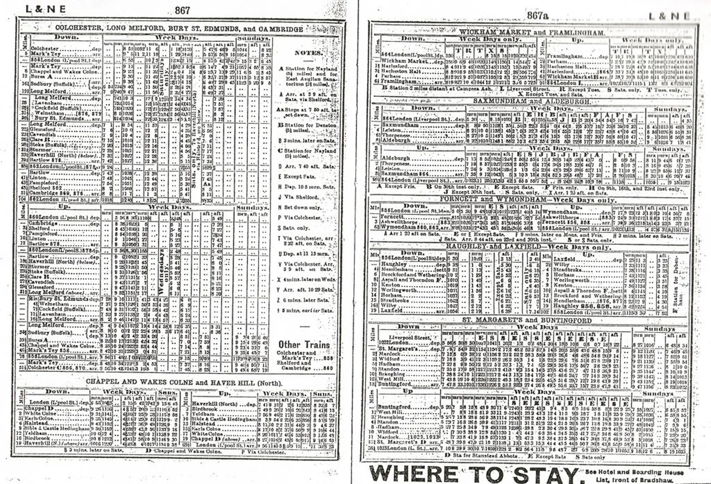 Bradshaws railway timetable from July 1938, including Marks Tey.