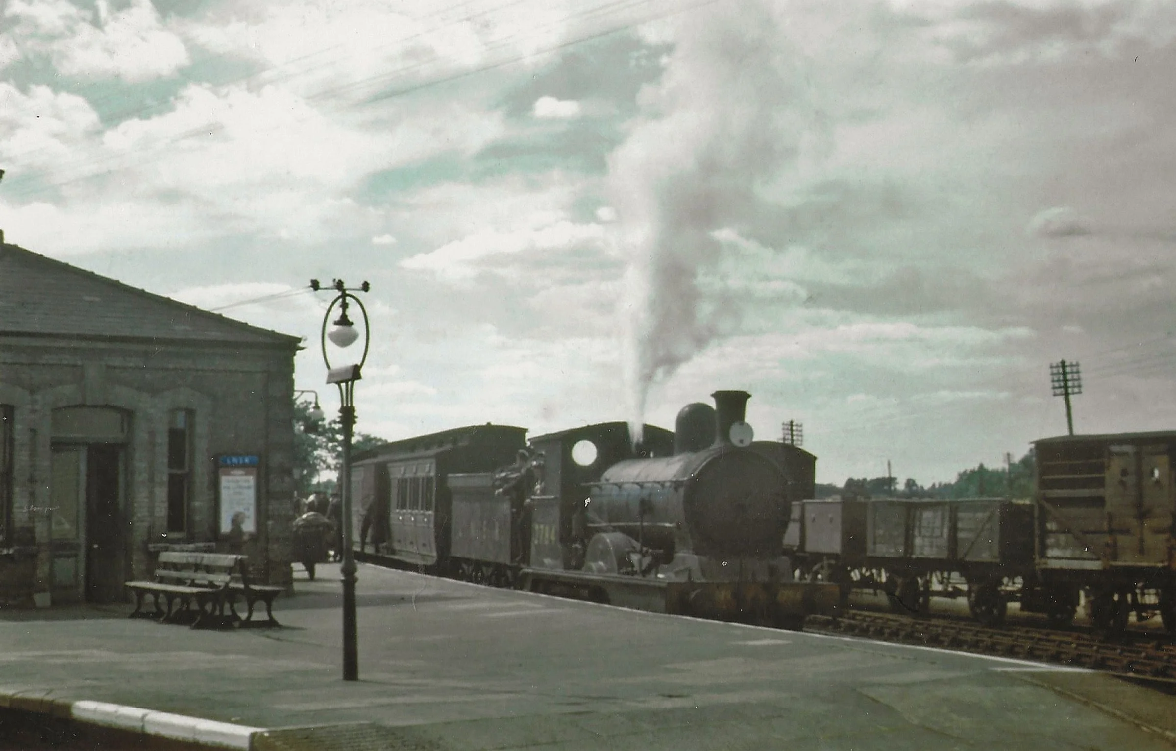 Historic photograph of a steam train at platform 3, heading towards Colchester.