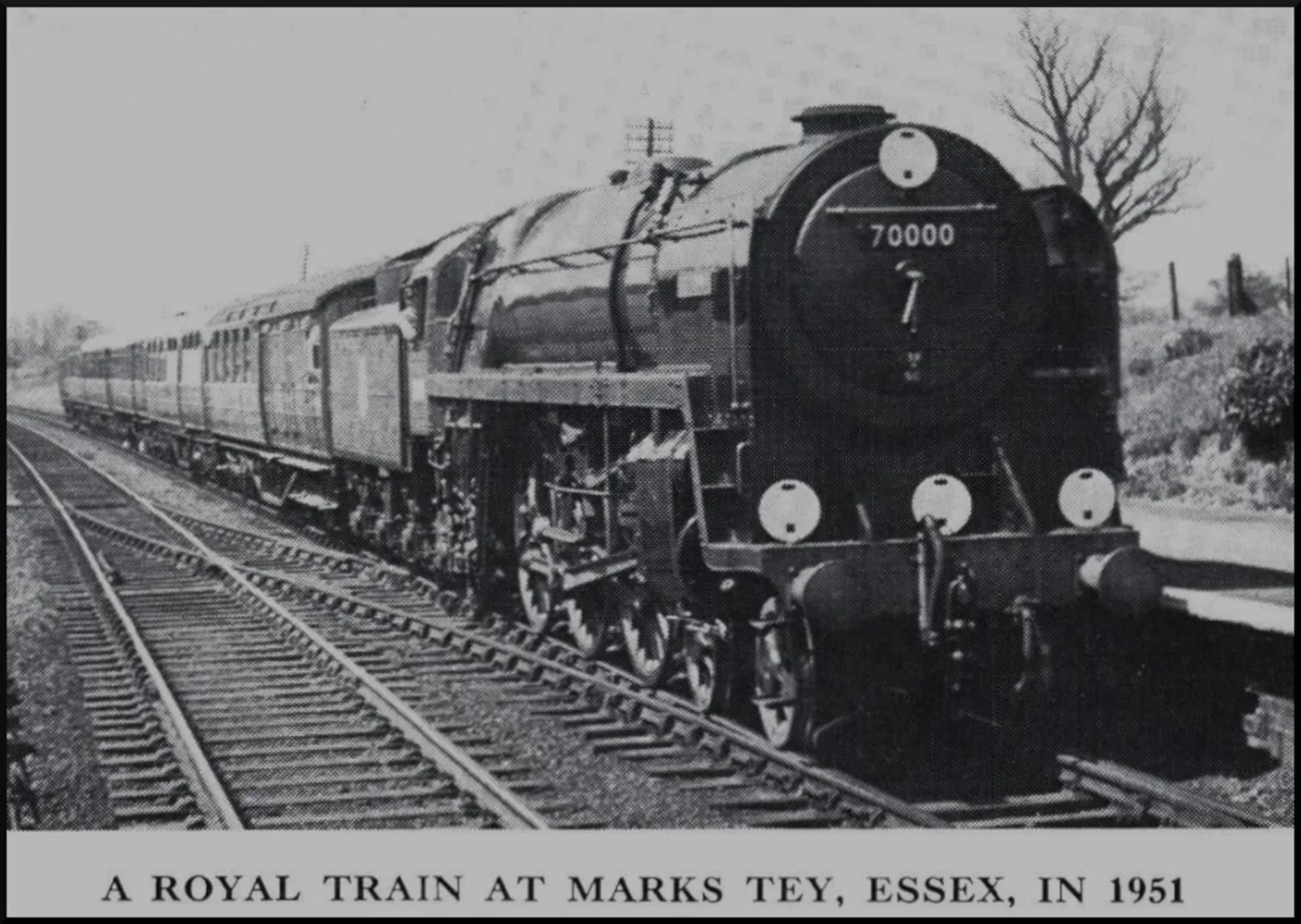 Published photograph of "A Royal Train at Marks Tey, Essex, in 1951".