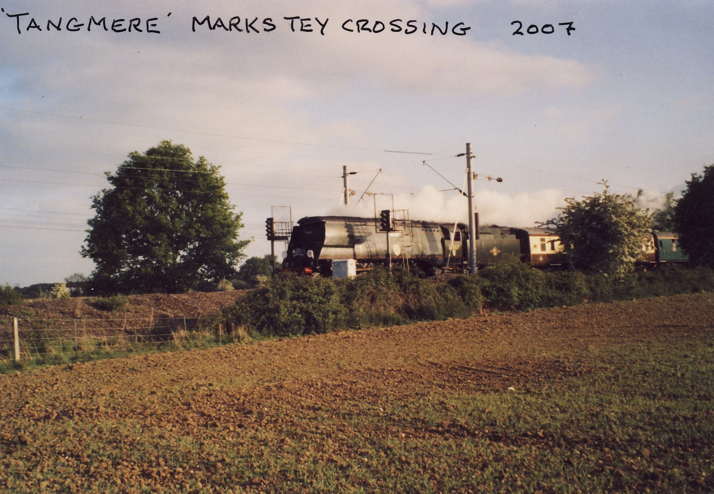 Photograph of Tangmere steam locomotive at Marks Tey crossing.